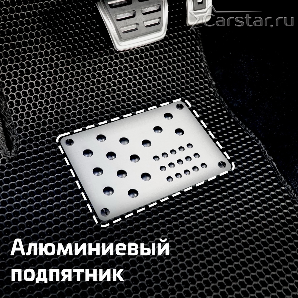 Эстетическая привлекательность: Металлический подпятник придает автомобильному коврику современный и стильный вид. Его элегантный дизайн и отличное исполнение добавляют роскоши и утонченности в интерьер автомобиля, делая его более привлекательным и эстетичным.
