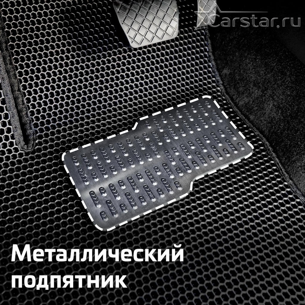 Эстетическая привлекательность: Металлический подпятник придает автомобильному коврику современный и стильный вид. Его элегантный дизайн и отличное исполнение добавляют роскоши и утонченности в интерьер автомобиля, делая его более привлекательным и эстетичным.
