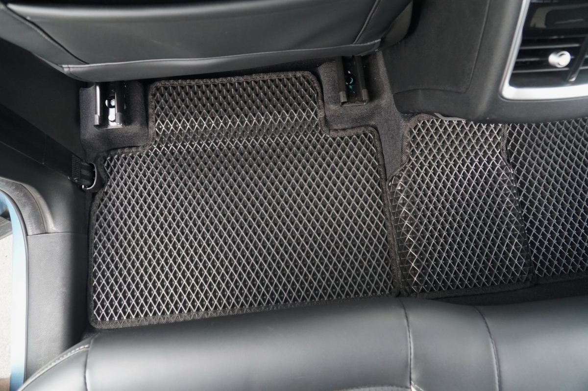 Толщина ковриков EVA составляет 10-12 мм. Глубина ячеек 7-8 мм. Такая толщина ковриков позволяет им служить довольно долго, не протираясь до 3 лет. А благодаря такой глубине ячеек коврик EVA площадью 1 кв.м. способен захватить около 3,5 л жидкости, сохраняя в чистоте вашу обувь и обивку салона.
