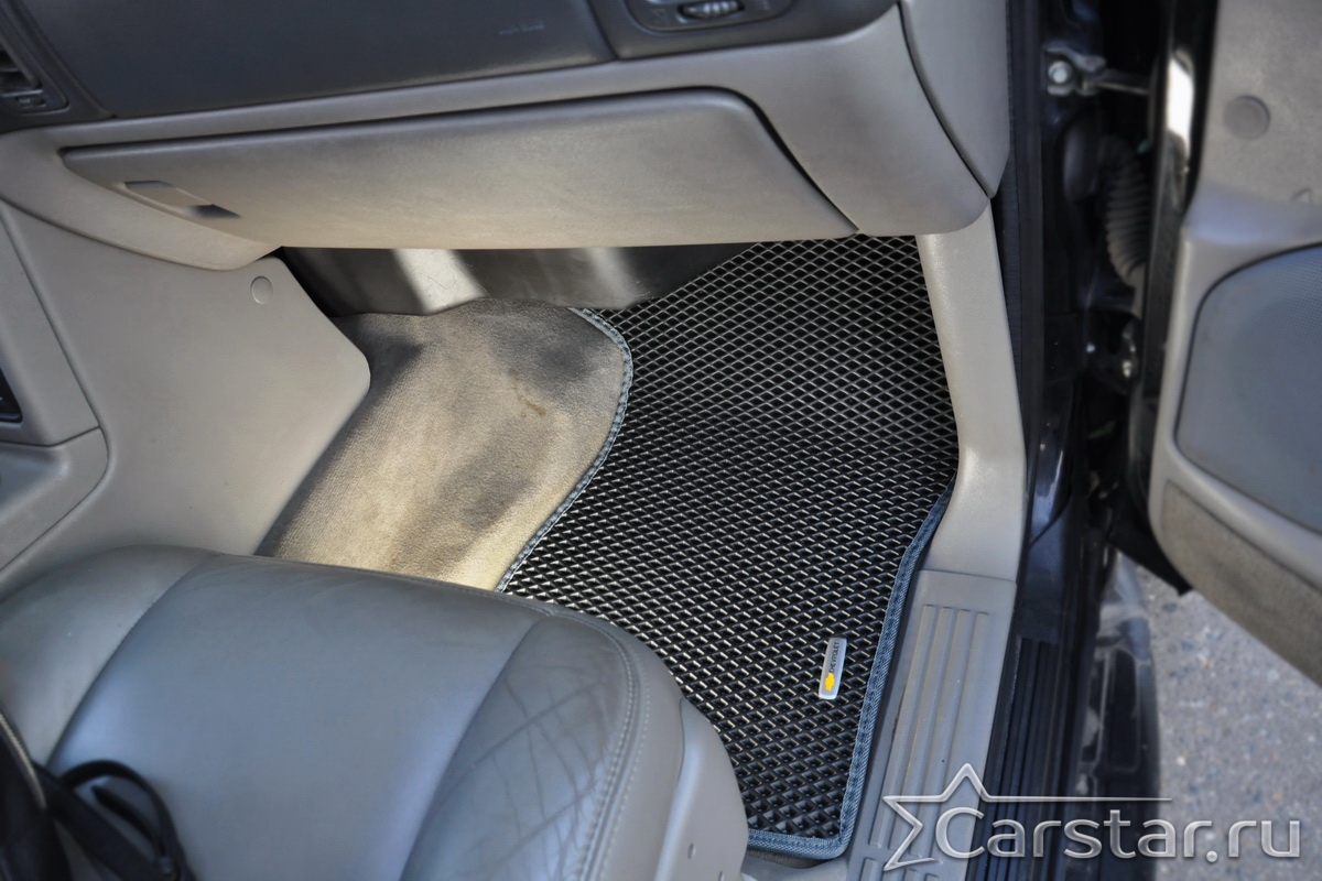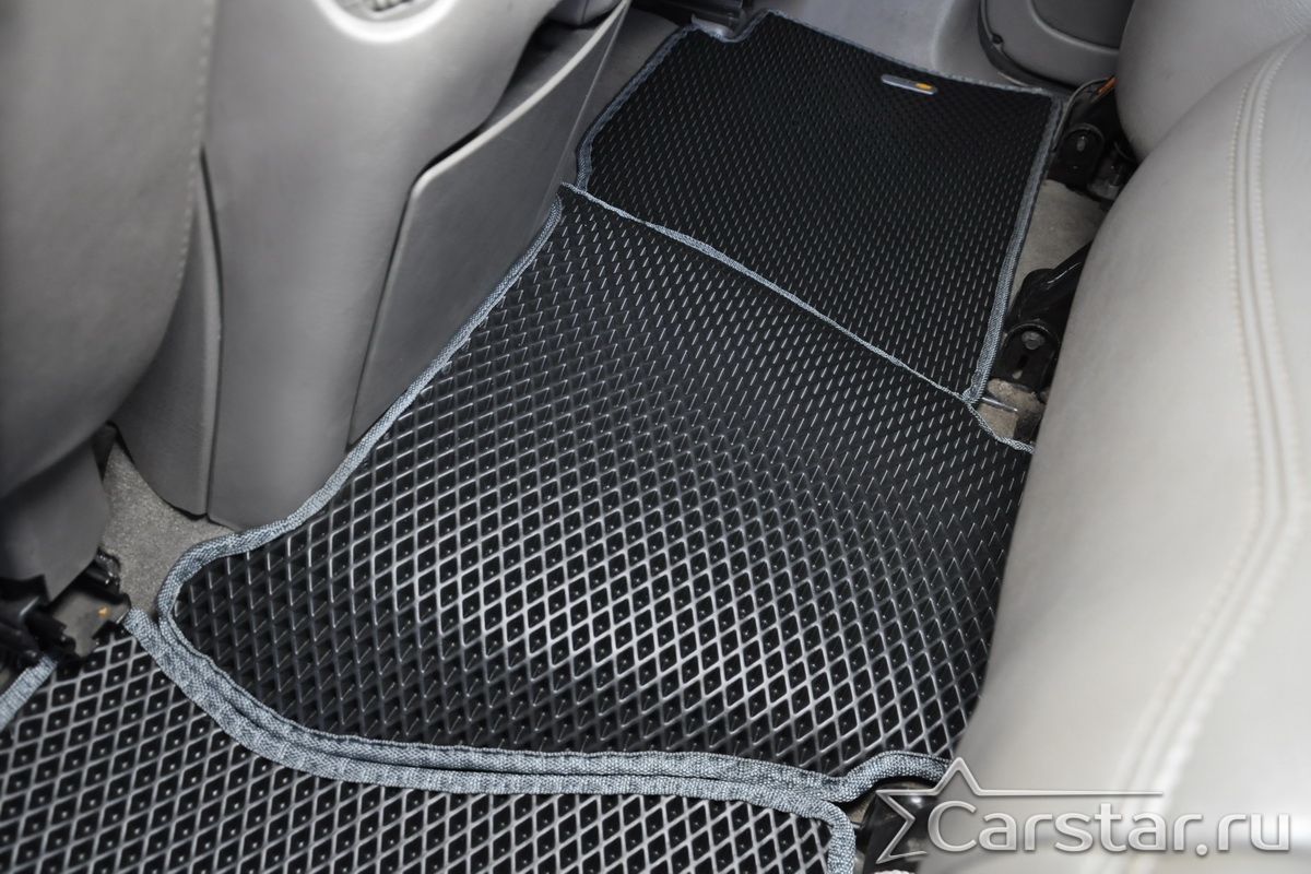 Толщина ковриков EVA составляет 10-12 мм. Глубина ячеек 7-8 мм. Такая толщина ковриков позволяет им служить довольно долго, не протираясь до 3 лет. А благодаря такой глубине ячеек коврик EVA площадью 1 кв.м. способен захватить около 3,5 л жидкости, сохраняя в чистоте вашу обувь и обивку салона.