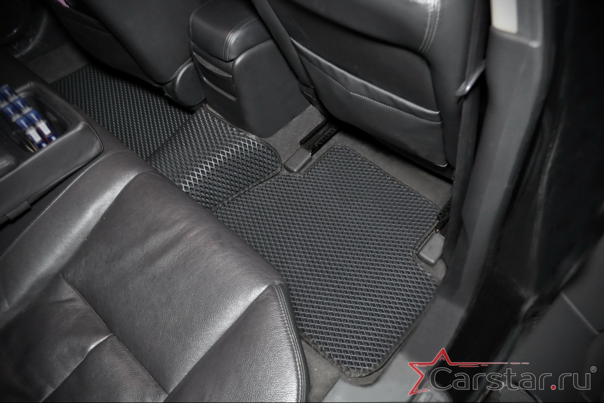 Толщина ковриков EVA составляет 10-12 мм. Глубина ячеек 7-8 мм. Такая толщина ковриков позволяет им служить довольно долго, не протираясь до 3 лет. А благодаря такой глубине ячеек коврик EVA площадью 1 кв.м. способен захватить около 3,5 л жидкости, сохраняя в чистоте вашу обувь и обивку салона.