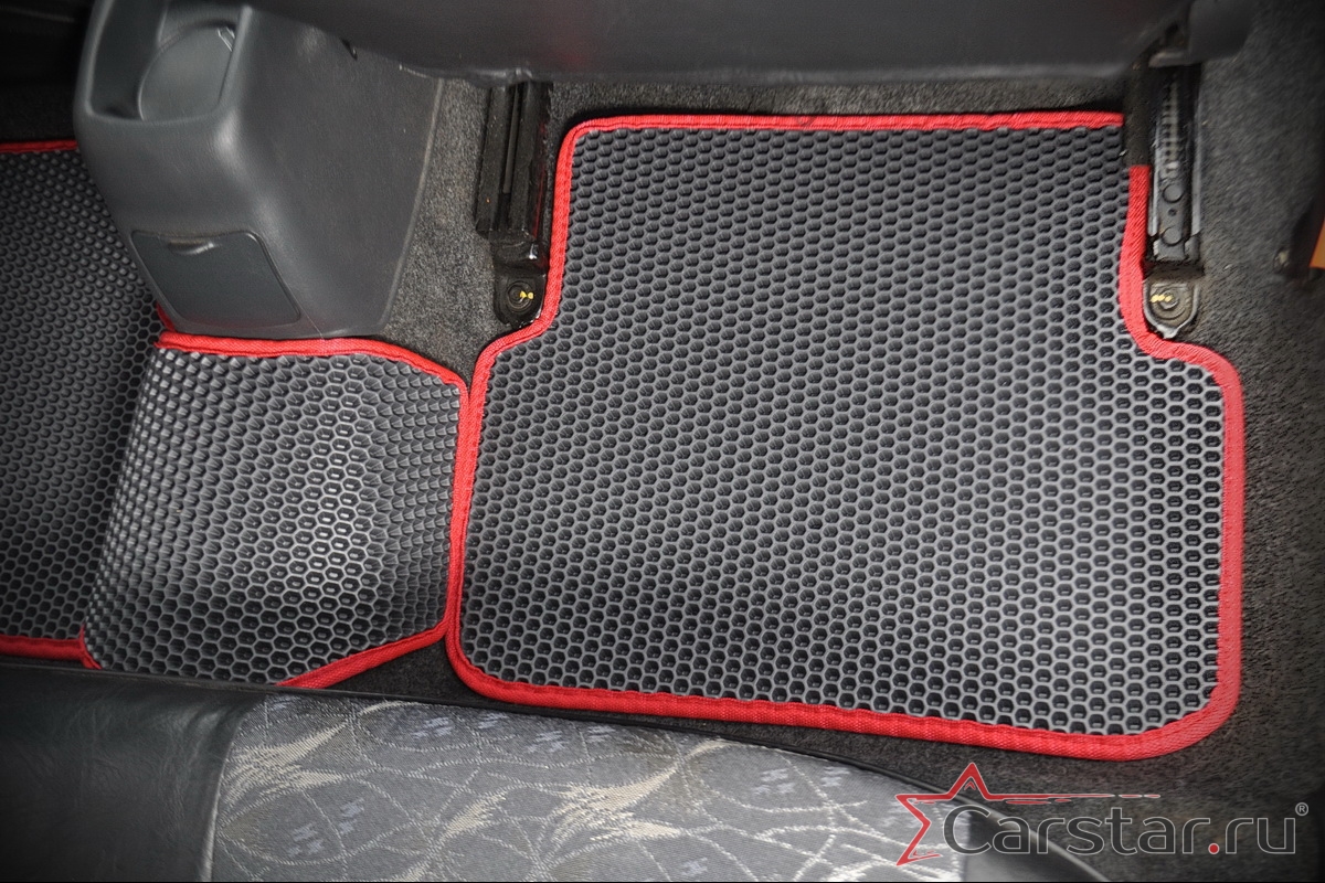 Толщина ковриков EVA составляет 10-12 мм. Глубина ячеек 7-8 мм. Такая толщина ковриков позволяет им служить довольно долго, не протираясь до 3 лет. А благодаря такой глубине ячеек коврик EVA площадью 1 кв.м. способен захватить около 3,5 л жидкости, сохраняя в чистоте вашу обувь и обивку салона.