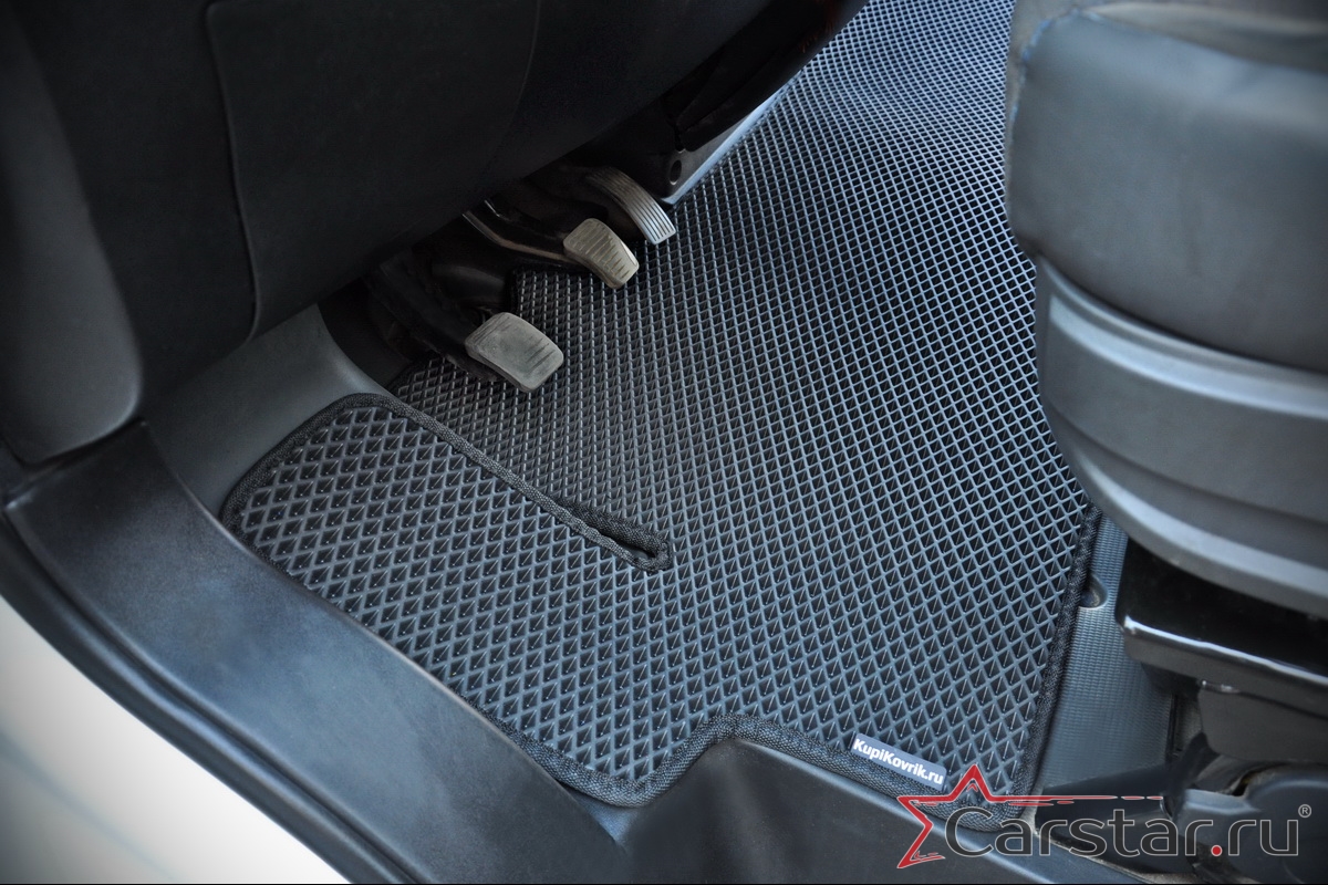 Автомобильные коврики EVA прекрасно подходят для всех существующих марок и моделей авто, здесь вы сможете заказать оптимальный аксессуар любого возможного цвета. По размерам они больше, чем стандартные резиновые коврики, поэтому покрывают максимальную площадь пола в салоне. А двойная система креплений (клипсы и липучки) позволяет надежно зафиксировать коврики в нужном месте.