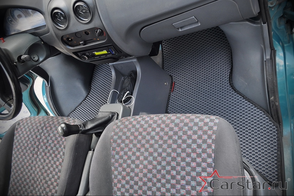 Толщина ковриков EVA составляет 10-12 мм. Глубина ячеек 7-8 мм. Такая толщина ковриков позволяет им служить довольно долго, не протираясь до 3 лет. А благодаря такой глубине ячеек коврик EVA площадью 1 кв.м. способен захватить около 3,5 л жидкости, сохраняя в чистоте вашу обувь и обивку салона.