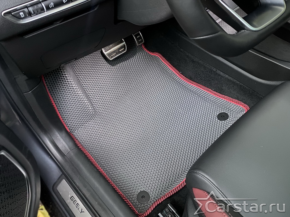Автомобильные коврики EVA Geely Coolray I (2019-2024) – это долговечные, удобные и универсальные аксессуары, которые помогут надежно защитить салон и багажник вашего авто от пыли, грязи и влаги в любое время года.