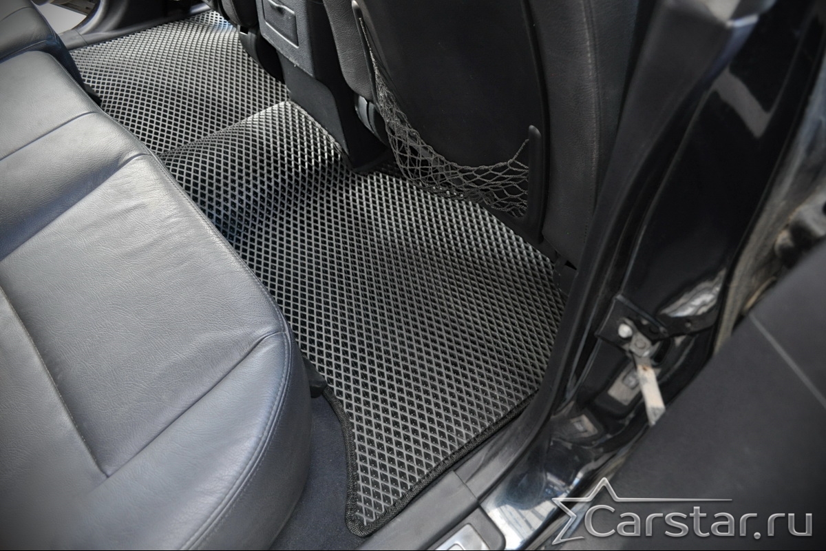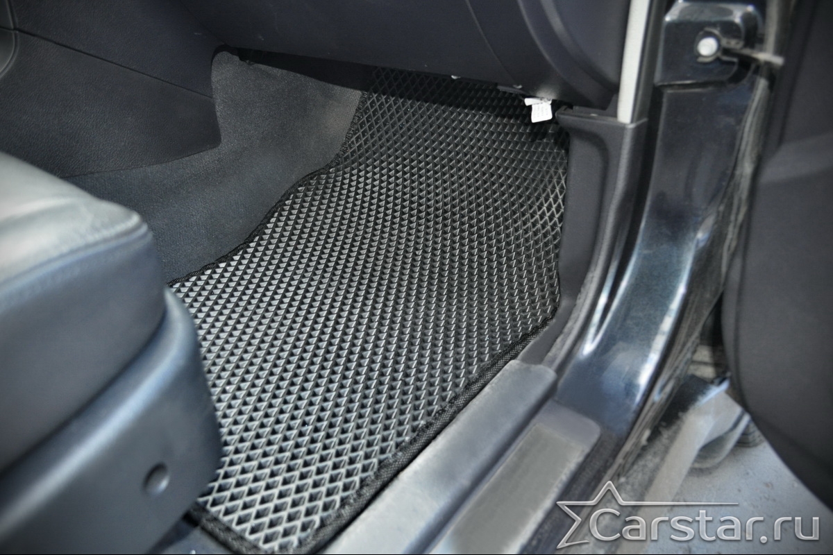 Толщина ковриков EVA составляет 10-12 мм. Глубина ячеек 7-8 мм. Такая толщина ковриков позволяет им служить довольно долго, не протираясь до 3 лет. А благодаря такой глубине ячеек коврик EVA площадью 1 кв.м. способен захватить около 3,5 л жидкости, сохраняя в чистоте вашу обувь и обивку салона.