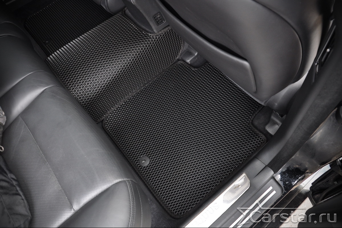 Толщина ковриков EVA составляет 10-12 мм. Глубина ячеек 7-8 мм. Такая толщина ковриков позволяет им служить довольно долго, не протираясь до 3 лет. А благодаря такой глубине ячеек коврик EVA площадью 1 кв.м. способен захватить около 3,5 л жидкости, сохраняя в чистоте вашу обувь и обивку салона.