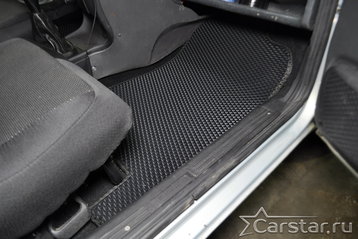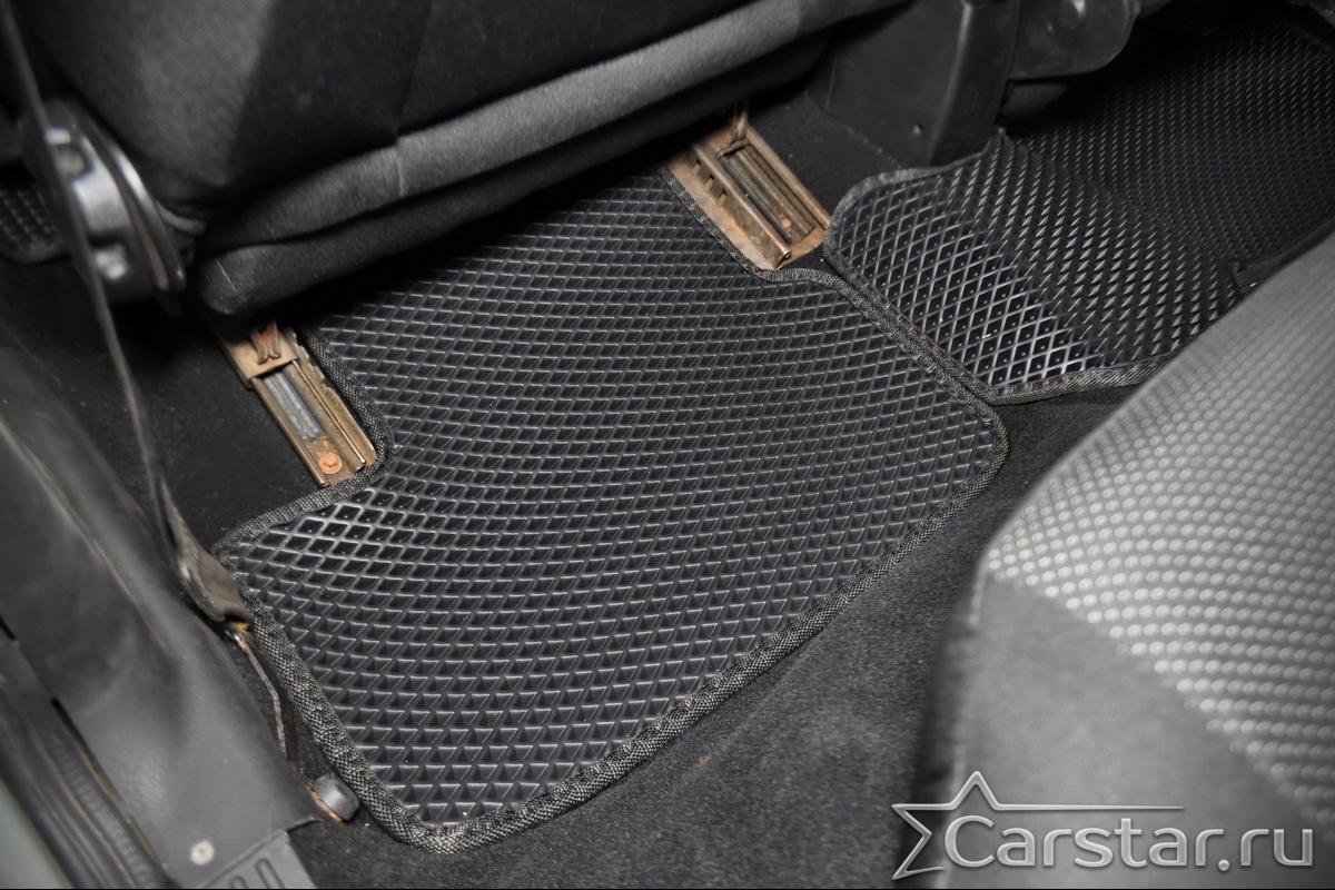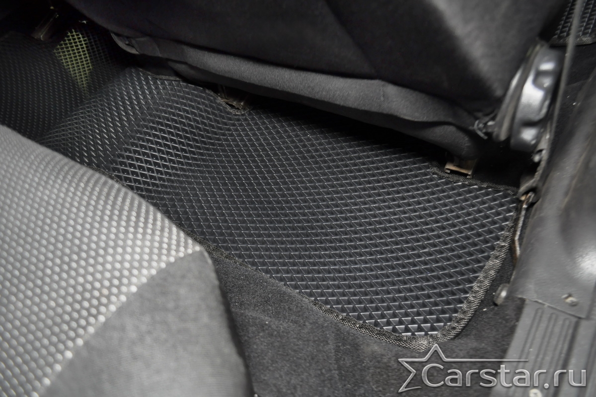 Толщина ковриков EVA составляет 10-12 мм. Глубина ячеек 7-8 мм. Такая толщина ковриков позволяет им служить довольно долго, не протираясь до 3 лет. А благодаря такой глубине ячеек коврик EVA площадью 1 кв.м. способен захватить около 3,5 л жидкости, сохраняя в чистоте вашу обувь и обивку салона.