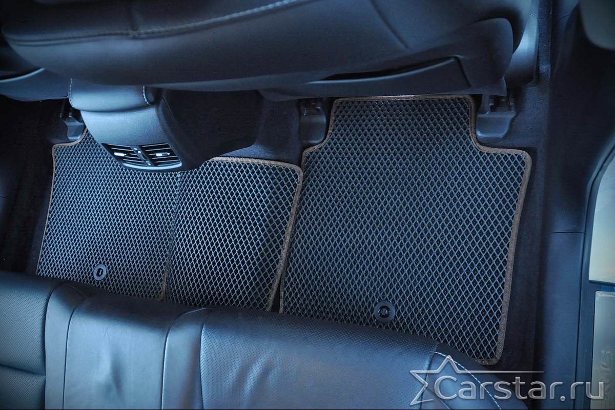 Толщина ковриков EVA составляет 10-12 мм. Глубина ячеек 7-8 мм. Такая толщина ковриков позволяет им служить довольно долго, не протираясь до 3 лет. А благодаря такой глубине ячеек коврик EVA площадью 1 кв.м. способен захватить около 3,5 л жидкости, сохраняя в чистоте вашу обувь и обивку салона.