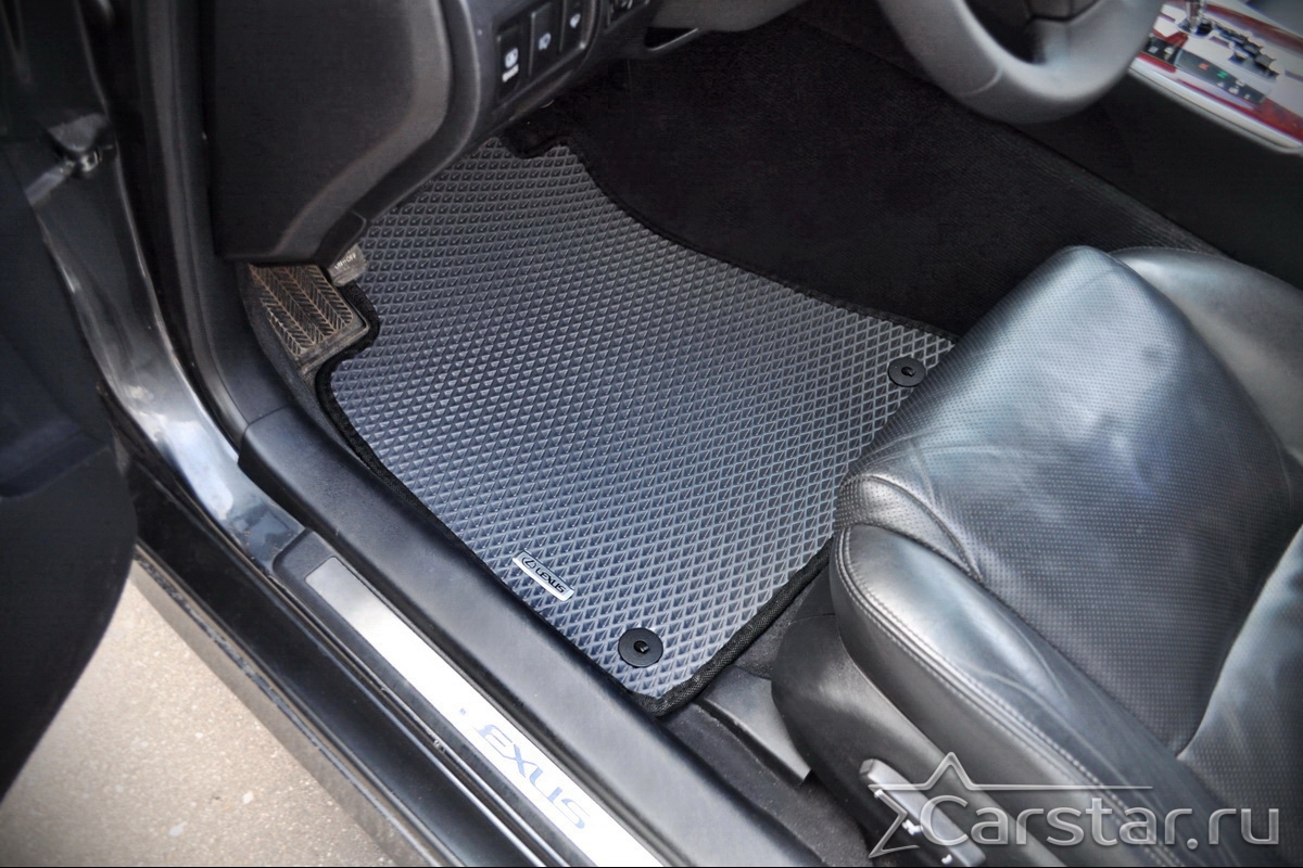 Изделия EVA имеют специальную ячеистую структуру (ячейки глубиной 8 мм), которая эффективно задерживает грязь и воду, оставляя вашу обувь и поверхность обивки салона или багажника абсолютно чистыми. Также эти ячейки очень легко и быстро очищаются без применения специальных инструментов, в том числе, при помощи бесконтактной мойки.