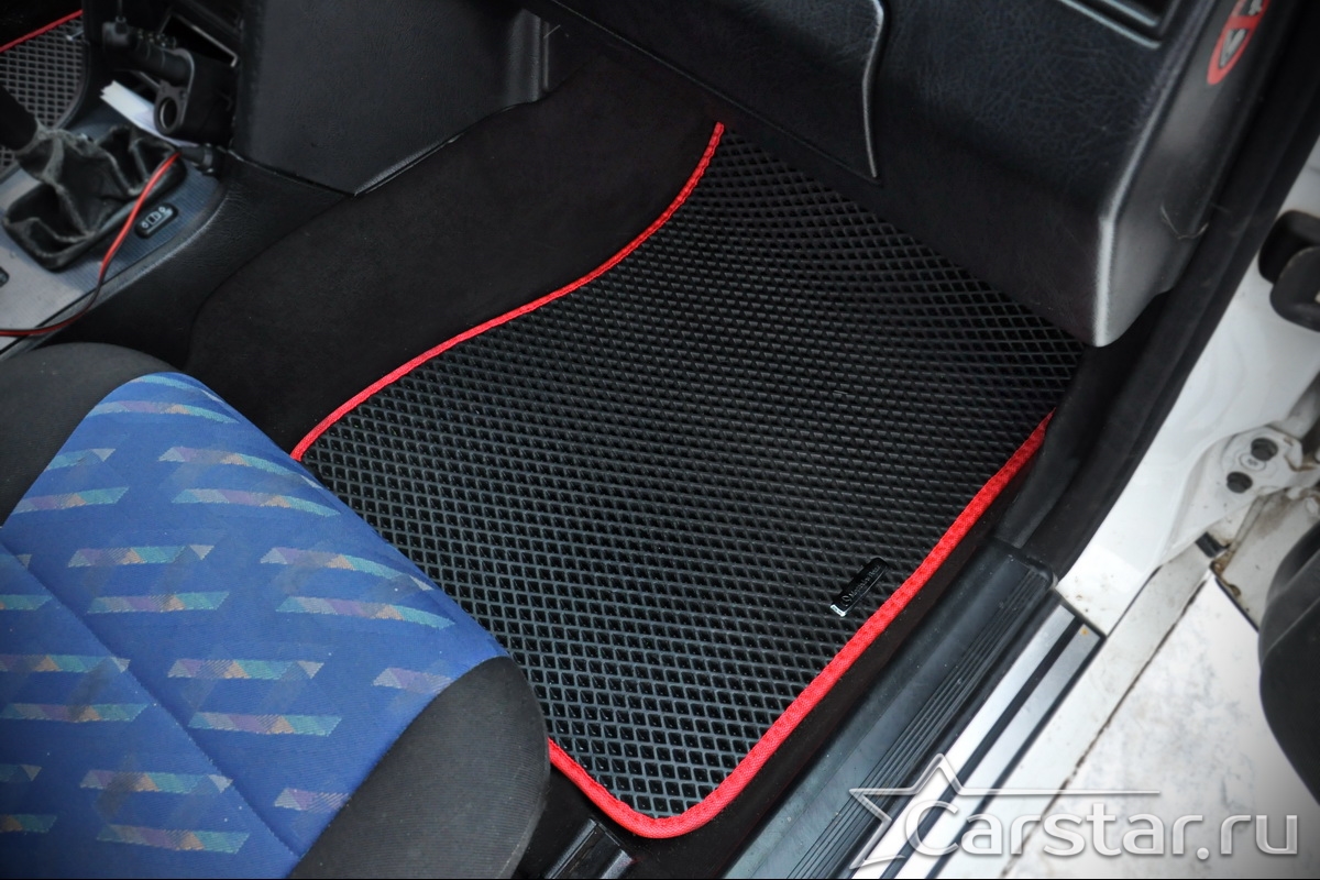 Толщина ковриков EVA составляет 10-12 мм. Глубина ячеек 7-8 мм. Такая толщина ковриков позволяет им служить довольно долго, не протираясь до 3 лет. А благодаря такой глубине ячеек коврик EVA площадью 1 кв.м. способен захватить около 3,5 л жидкости, сохраняя в чистоте вашу обувь и обивку салона.