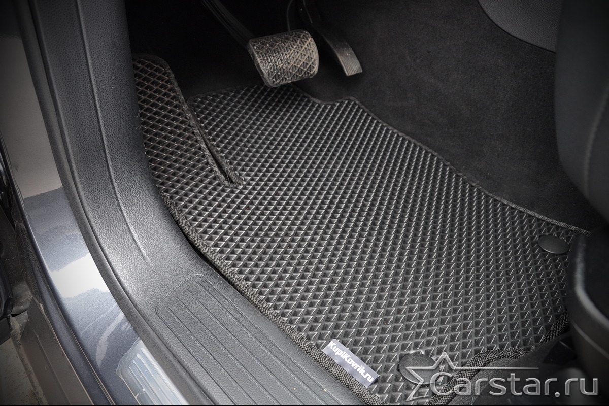 Автомобильные коврики EVA прекрасно подходят для всех существующих марок и моделей авто, здесь вы сможете заказать оптимальный аксессуар любого возможного цвета. По размерам они больше, чем стандартные резиновые коврики, поэтому покрывают максимальную площадь пола в салоне. А двойная система креплений (клипсы и липучки) позволяет надежно зафиксировать коврики в нужном месте.