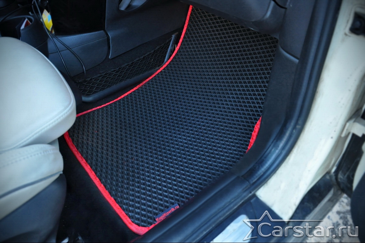 Автомобильные коврики EVA прекрасно подходят для всех существующих марок и моделей авто, здесь вы сможете заказать оптимальный аксессуар любого возможного цвета. По размерам они больше, чем стандартные резиновые коврики, поэтому покрывают максимальную площадь пола в салоне. А двойная система креплений (клипсы и липучки) позволяет надежно зафиксировать коврики в нужном месте.