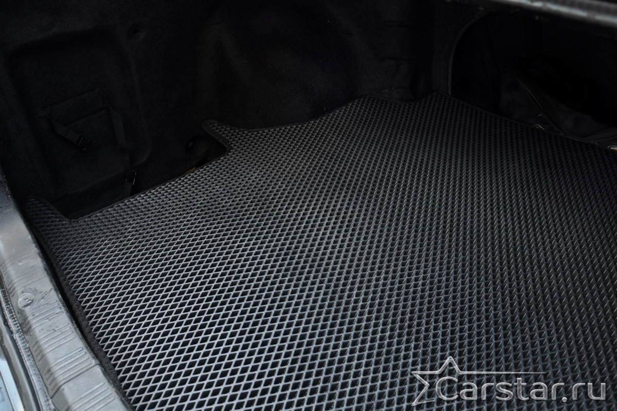 Толщина ковриков EVA составляет 10-12 мм. Глубина ячеек 7-8 мм. Такая толщина ковриков позволяет им служить довольно долго, не протираясь до 3 лет. А благодаря такой глубине ячеек коврик EVA площадью 1 кв.м. способен захватить около 3,5 л жидкости, сохраняя в чистоте вашу обувь и обивку салона.