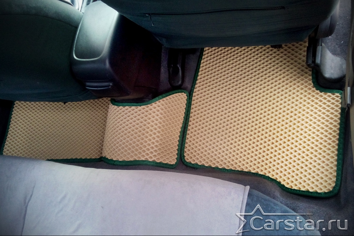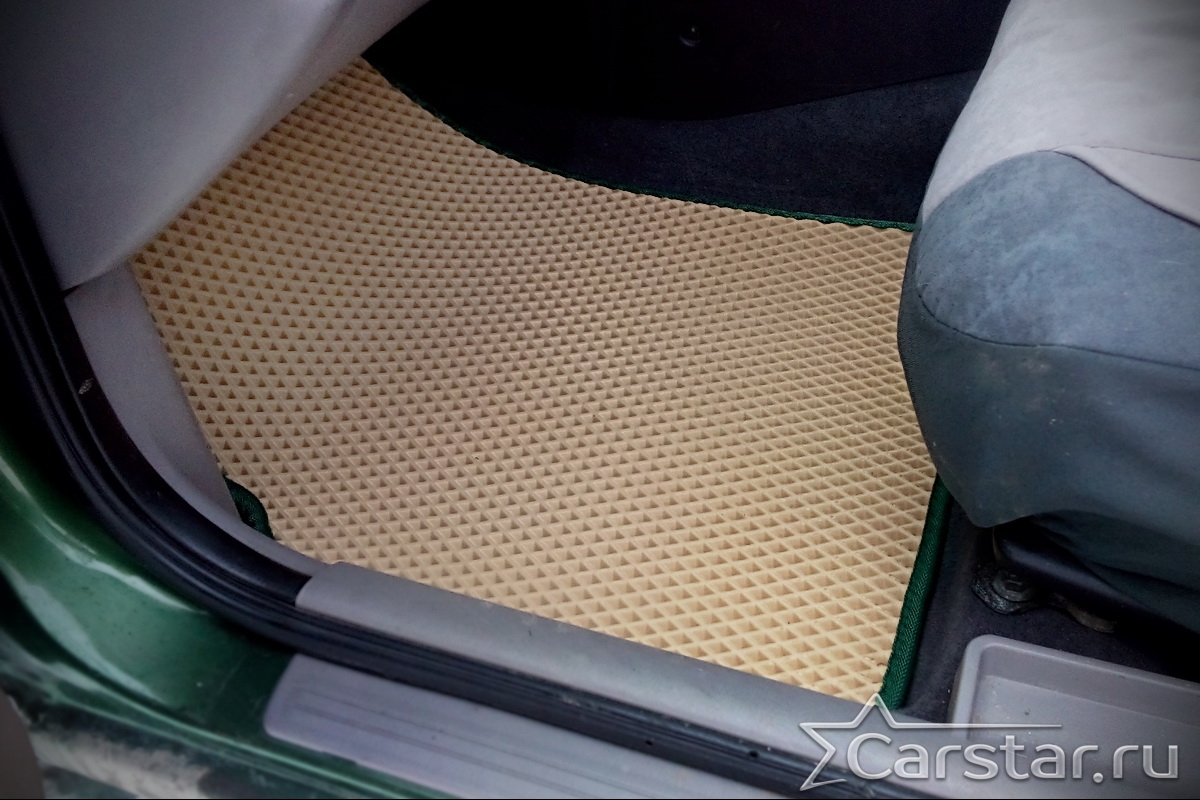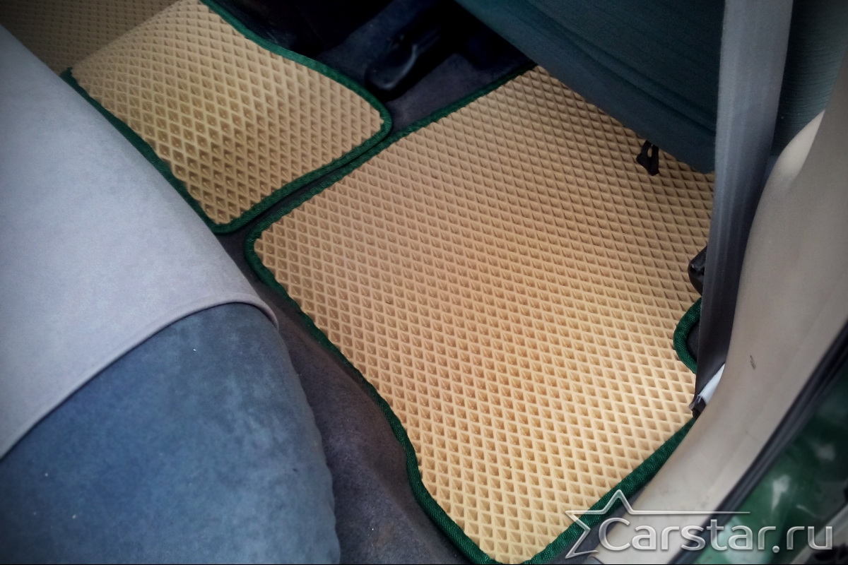 Толщина ковриков EVA составляет 10-12 мм. Глубина ячеек 7-8 мм. Такая толщина ковриков позволяет им служить довольно долго, не протираясь до 3 лет. А благодаря такой глубине ячеек коврик EVA площадью 1 кв.м. способен захватить около 3,5 л жидкости, сохраняя в чистоте вашу обувь и обивку салона.