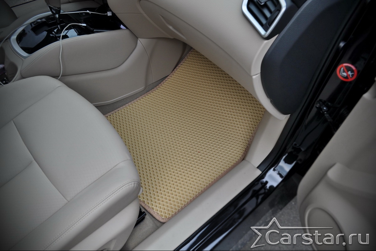 Толщина ковриков EVA составляет 10-12 мм. Глубина ячеек 7-8 мм. Такая толщина ковриков позволяет им служить довольно долго, не протираясь до 3 лет. А благодаря такой глубине ячеек коврик EVA площадью 1 кв.м. способен захватить около 3,5 л жидкости, сохраняя в чистоте вашу обувь и обивку салона.