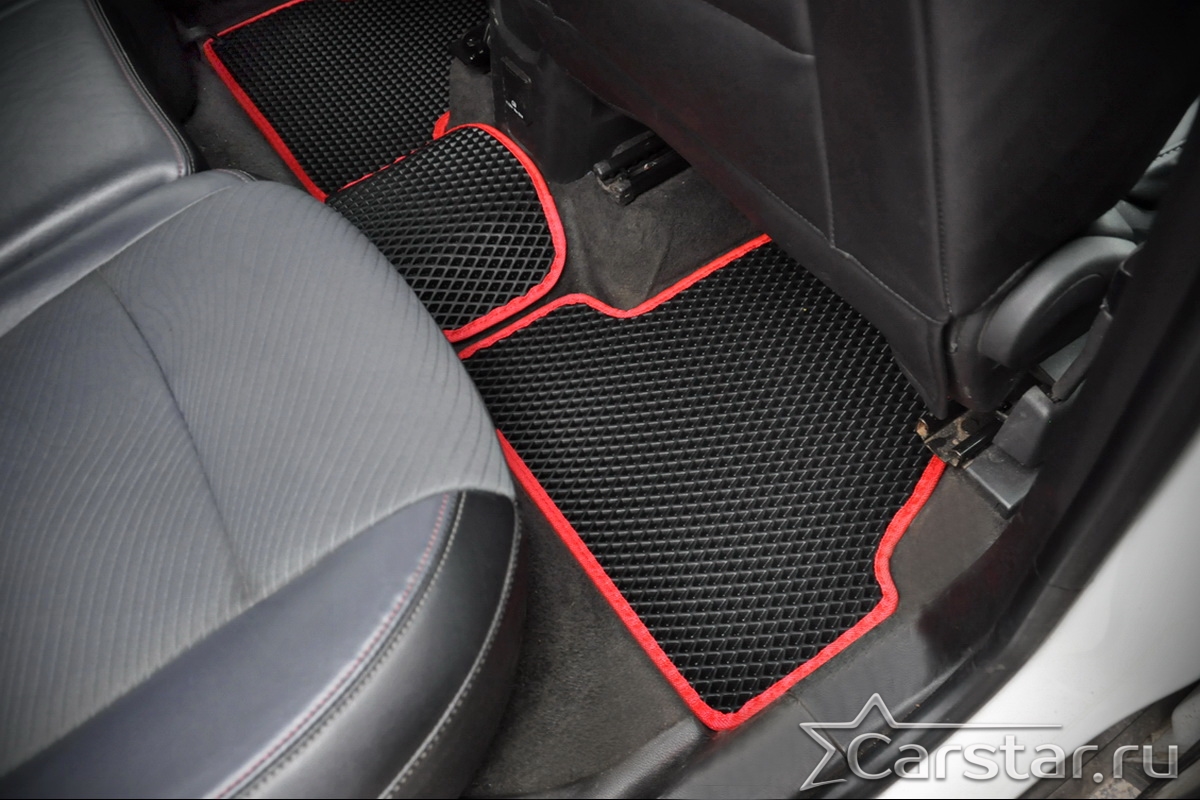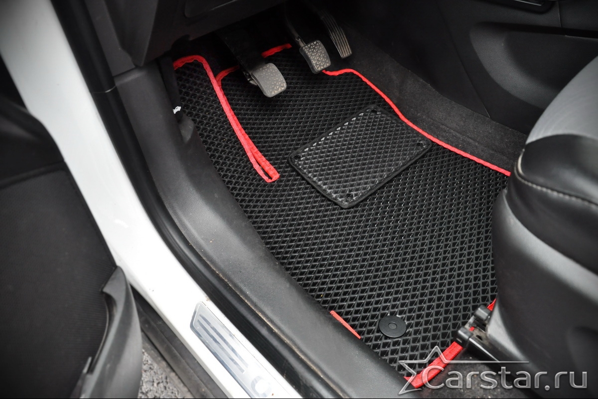 Коврики EVA надёжно крепятся с помощью оригинальных систем фиксации. Благодаря клипсам и липучке коврики защищены от смещений, что обеспечивает комфорт и безопасность вождения. Максимальное удобство также достигается точными, улучшенными лекалами для каждого автомобиля.