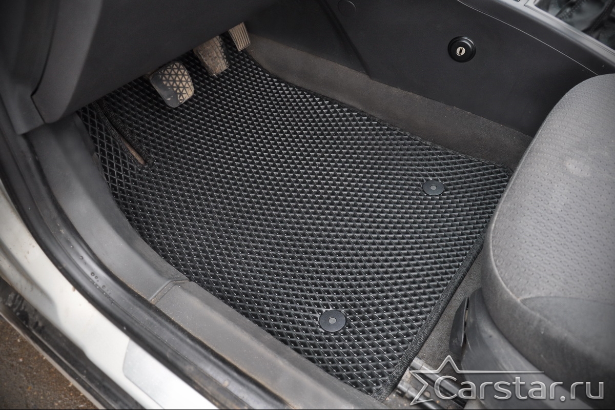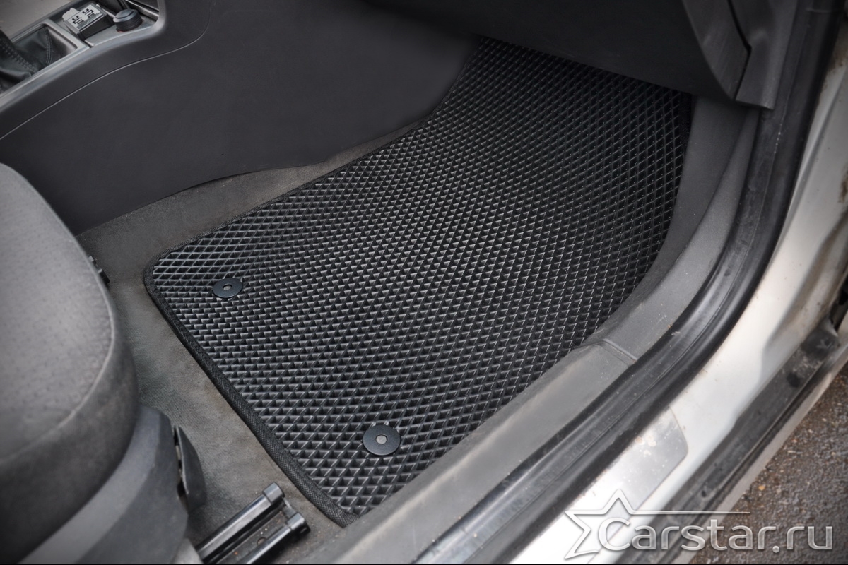 Коврики EVA надёжно крепятся с помощью оригинальных систем фиксации. Благодаря клипсам и липучке коврики защищены от смещений, что обеспечивает комфорт и безопасность вождения. Максимальное удобство также достигается точными, улучшенными лекалами для каждого автомобиля.
