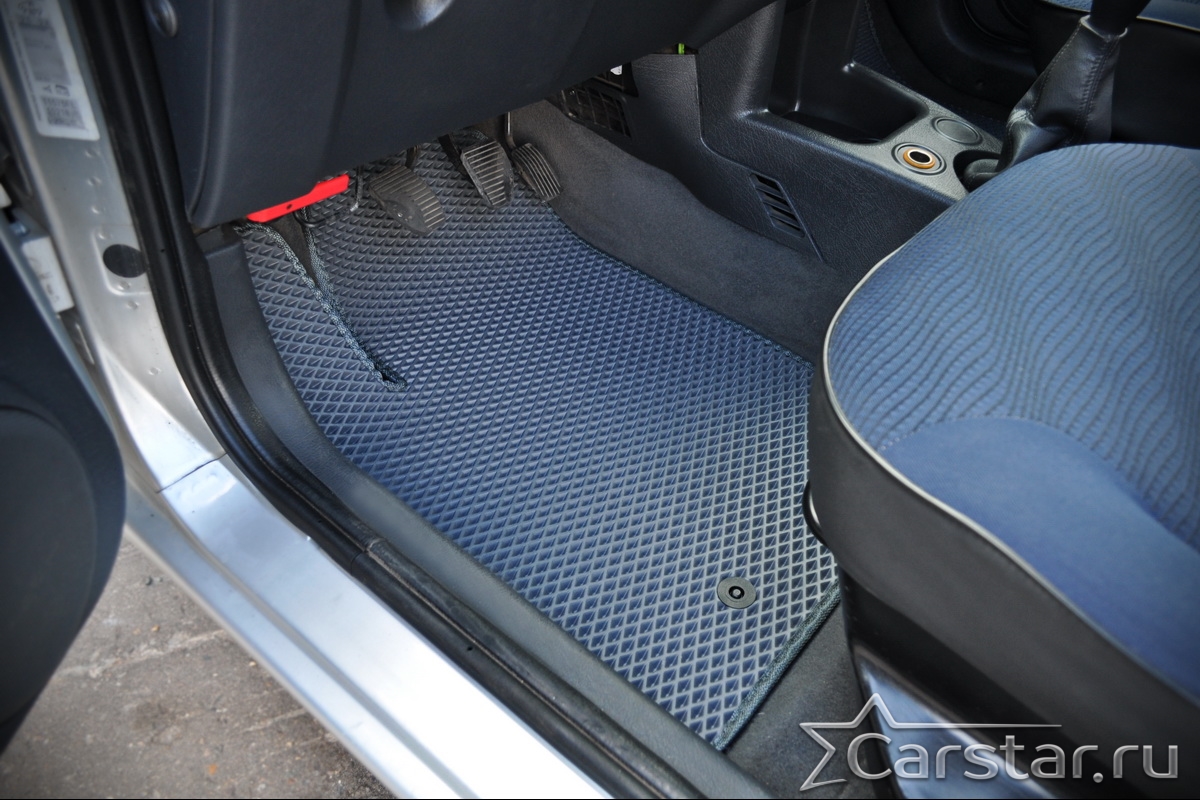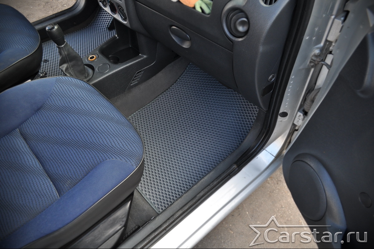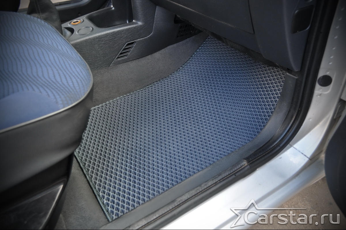 Толщина ковриков EVA составляет 10-12 мм. Глубина ячеек 7-8 мм. Такая толщина ковриков позволяет им служить довольно долго, не протираясь до 3 лет. А благодаря такой глубине ячеек коврик EVA площадью 1 кв.м. способен захватить около 3,5 л жидкости, сохраняя в чистоте вашу обувь и обивку салона.