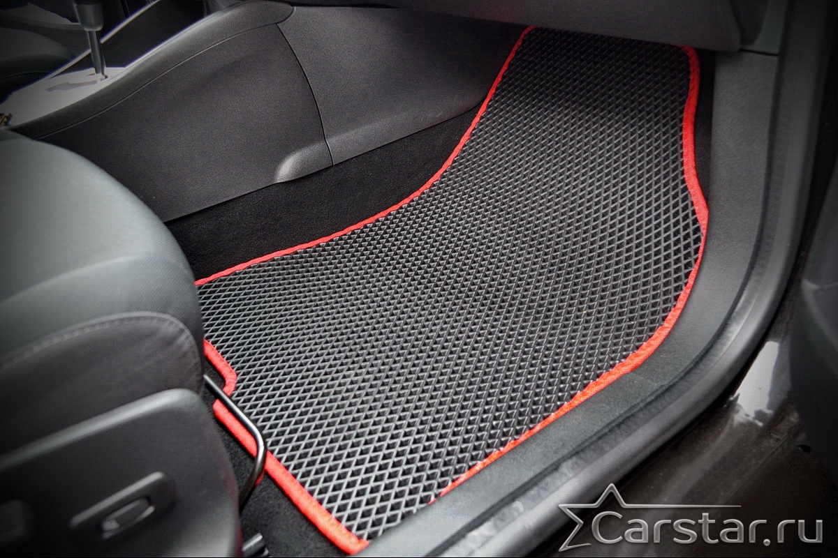 Автомобильные коврики EVA прекрасно подходят для всех существующих марок и моделей авто, здесь вы сможете заказать оптимальный аксессуар любого возможного цвета. По размерам они больше, чем стандартные резиновые коврики, поэтому покрывают максимальную площадь пола в салоне. А двойная система креплений (клипсы и липучки) позволяет надежно зафиксировать коврики в нужном месте.