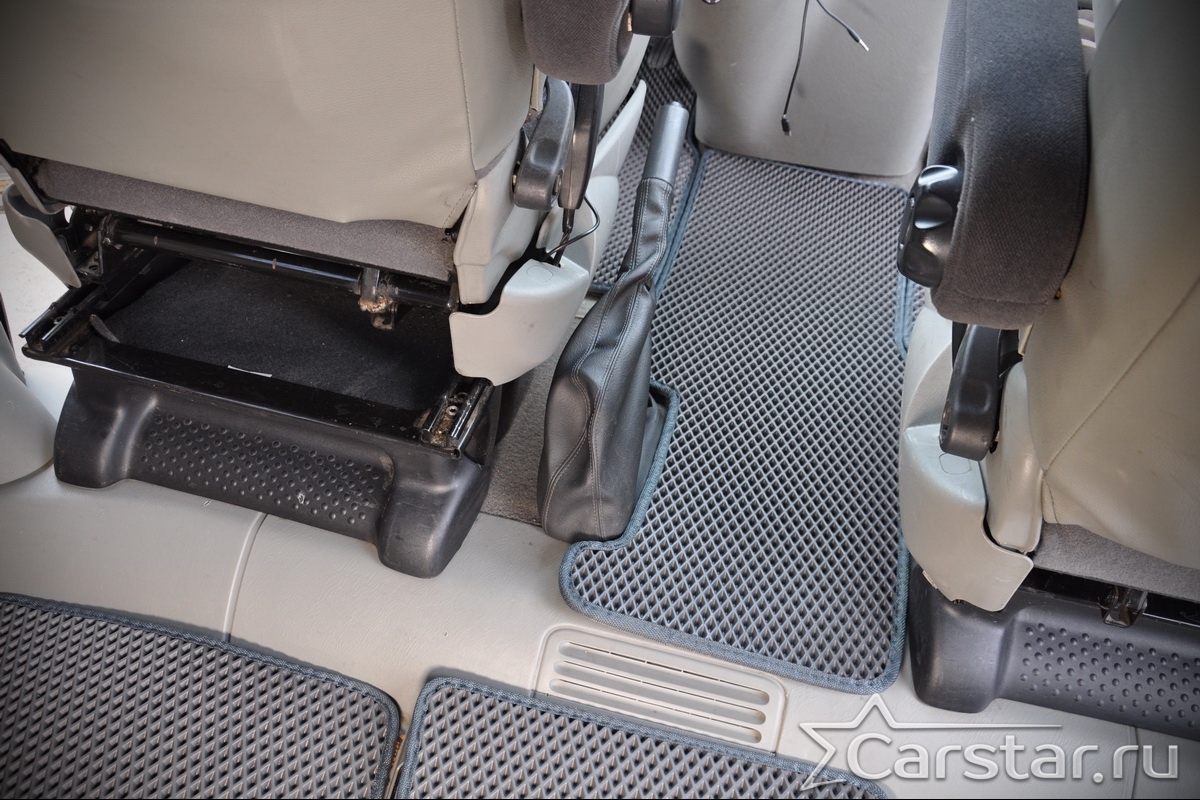 Толщина ковриков EVA составляет 10-12 мм. Глубина ячеек 7-8 мм. Такая толщина ковриков позволяет им служить довольно долго, не протираясь до 3 лет. А благодаря такой глубине ячеек коврик EVA площадью 1 кв.м. способен захватить около 3,5 л жидкости, сохраняя в чистоте вашу обувь и обивку салона.