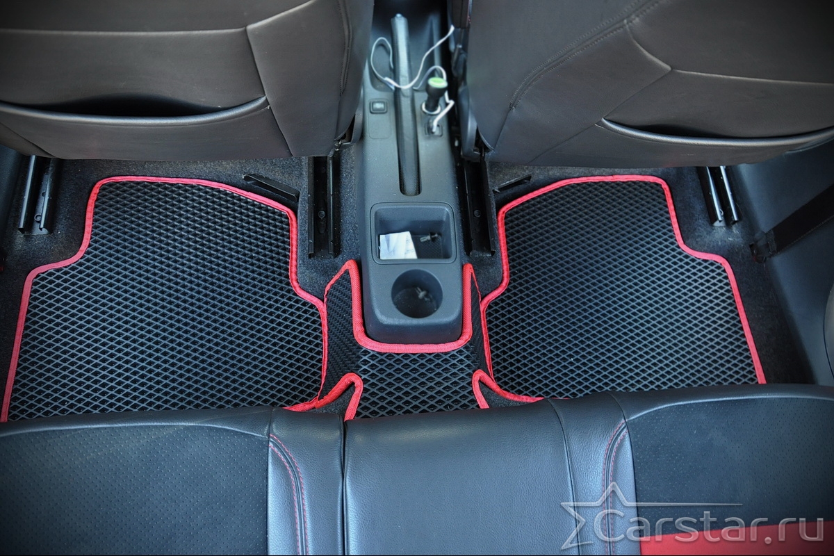 Толщина ковриков EVA составляет 10-12 мм. Глубина ячеек 7-8 мм. Такая толщина ковриков позволяет им служить довольно долго, не протираясь до 3 лет. А благодаря такой глубине ячеек коврик EVA площадью 1 кв.м. способен захватить около 3,5 л жидкости, сохраняя в чистоте вашу обувь и обивку салона.