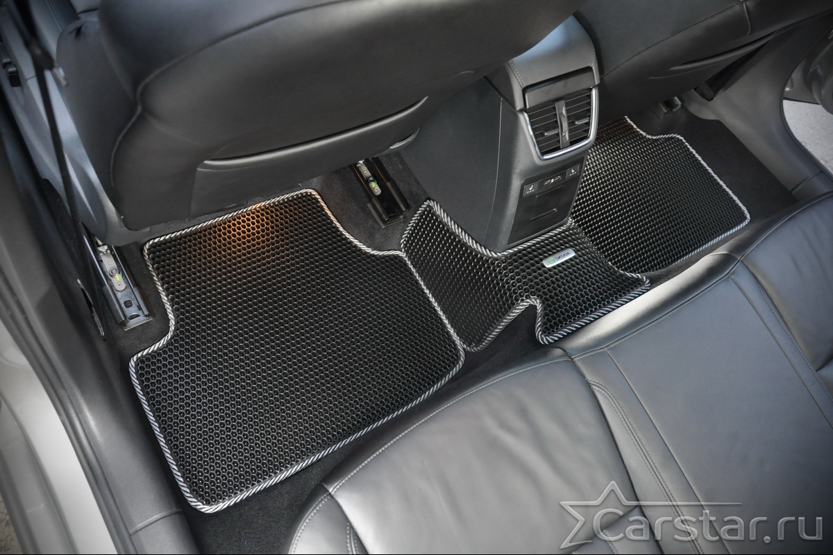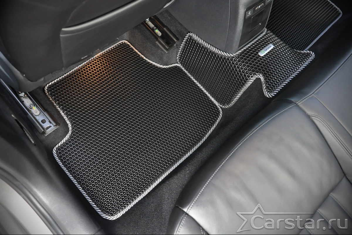 Толщина ковриков EVA составляет 10-12 мм. Глубина ячеек 7-8 мм. Такая толщина ковриков позволяет им служить довольно долго, не протираясь до 3 лет. А благодаря такой глубине ячеек коврик EVA площадью 1 кв.м. способен захватить около 3,5 л жидкости, сохраняя в чистоте вашу обувь и обивку салона.