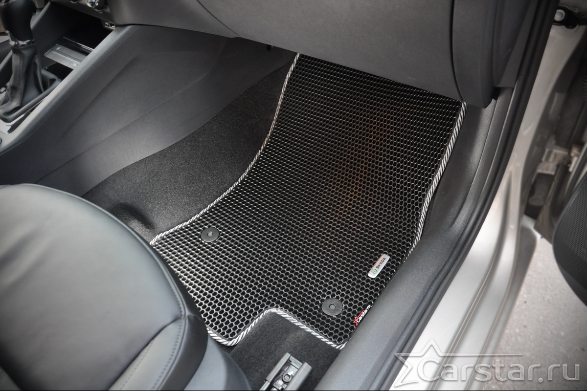 Коврики EVA надёжно крепятся с помощью оригинальных систем фиксации. Благодаря клипсам и липучке коврики защищены от смещений, что обеспечивает комфорт и безопасность вождения. Максимальное удобство также достигается точными, улучшенными лекалами для каждого автомобиля.