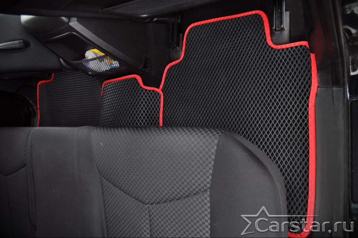 Толщина ковриков EVA составляет 10-12 мм. Глубина ячеек 7-8 мм. Такая толщина ковриков позволяет им служить довольно долго, не протираясь до 3 лет. А благодаря такой глубине ячеек коврик EVA площадью 1 кв.м. способен захватить около 3,5 л жидкости, сохраняя в чистоте вашу обувь и обивку салона.