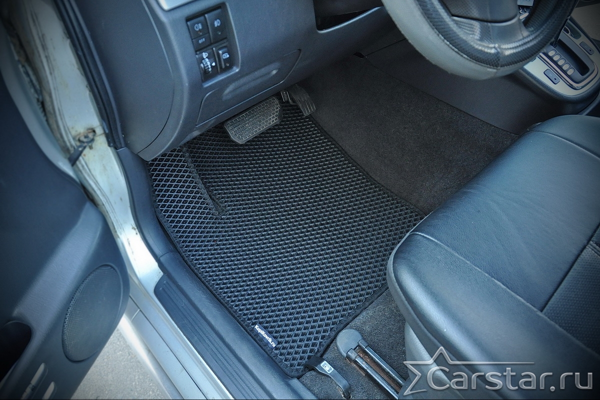 Толщина ковриков EVA составляет 10-12 мм. Глубина ячеек 7-8 мм. Такая толщина ковриков позволяет им служить довольно долго, не протираясь до 3 лет. А благодаря такой глубине ячеек коврик EVA площадью 1 кв.м. способен захватить около 3,5 л жидкости, сохраняя в чистоте вашу обувь и обивку салона.