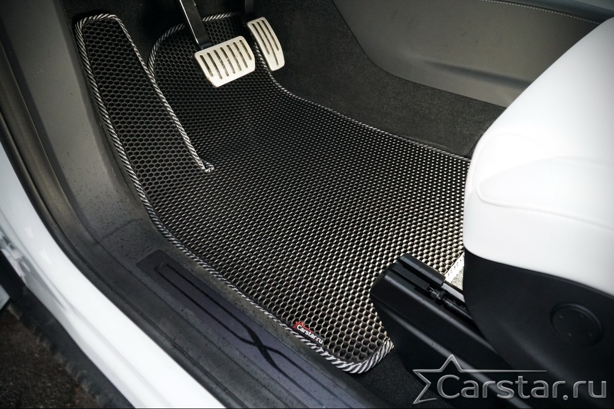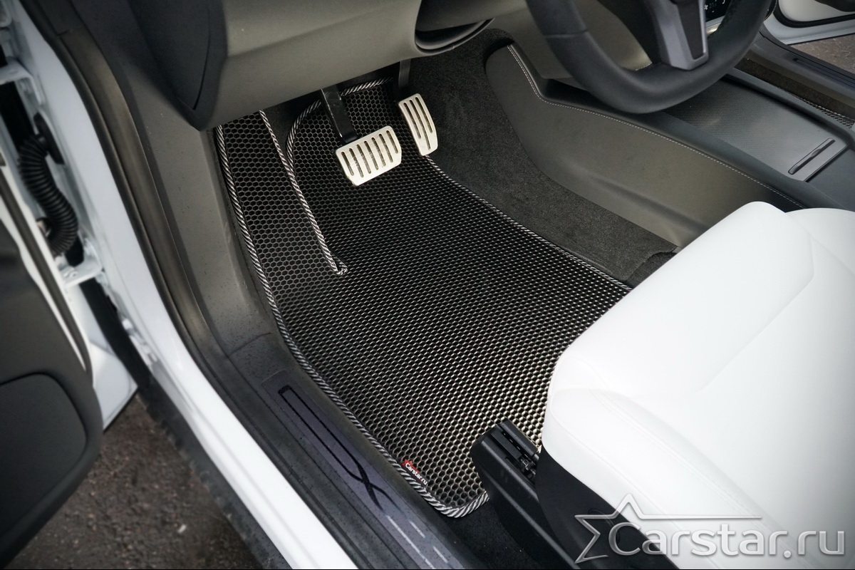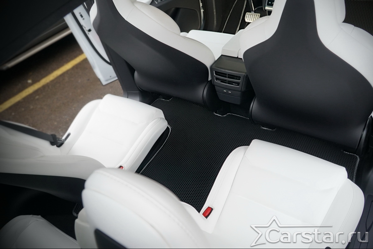 Автомобильные коврики EVA Tesla Model X 6 мест 3 ряда (2015->) – это долговечные, удобные и универсальные аксессуары, которые помогут надежно защитить салон и багажник вашего авто от пыли, грязи и влаги в любое время года.