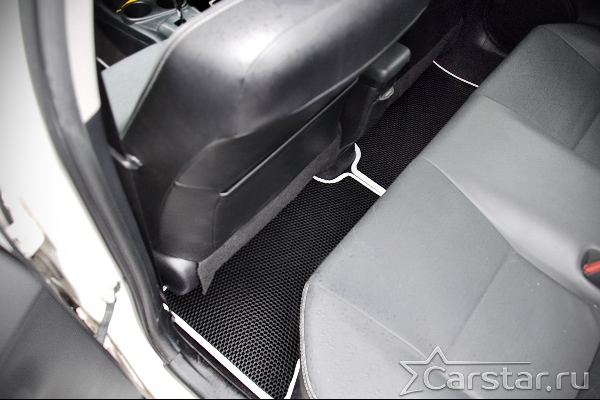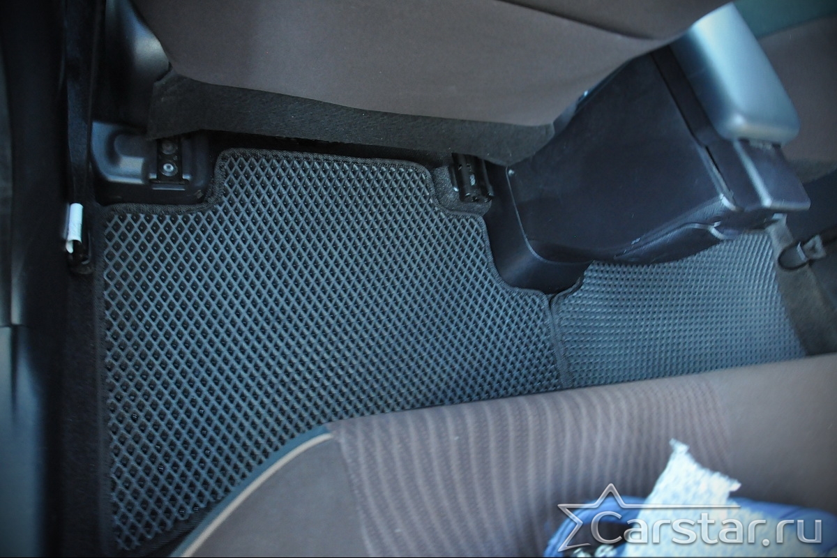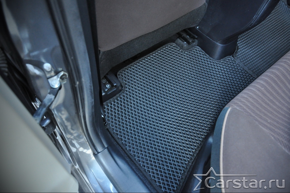 Толщина ковриков EVA составляет 10-12 мм. Глубина ячеек 7-8 мм. Такая толщина ковриков позволяет им служить довольно долго, не протираясь до 3 лет. А благодаря такой глубине ячеек коврик EVA площадью 1 кв.м. способен захватить около 3,5 л жидкости, сохраняя в чистоте вашу обувь и обивку салона.