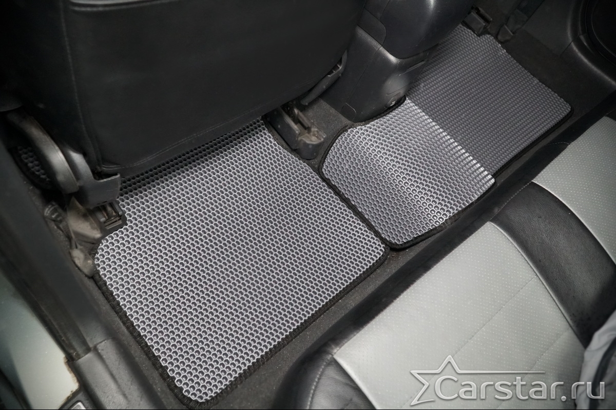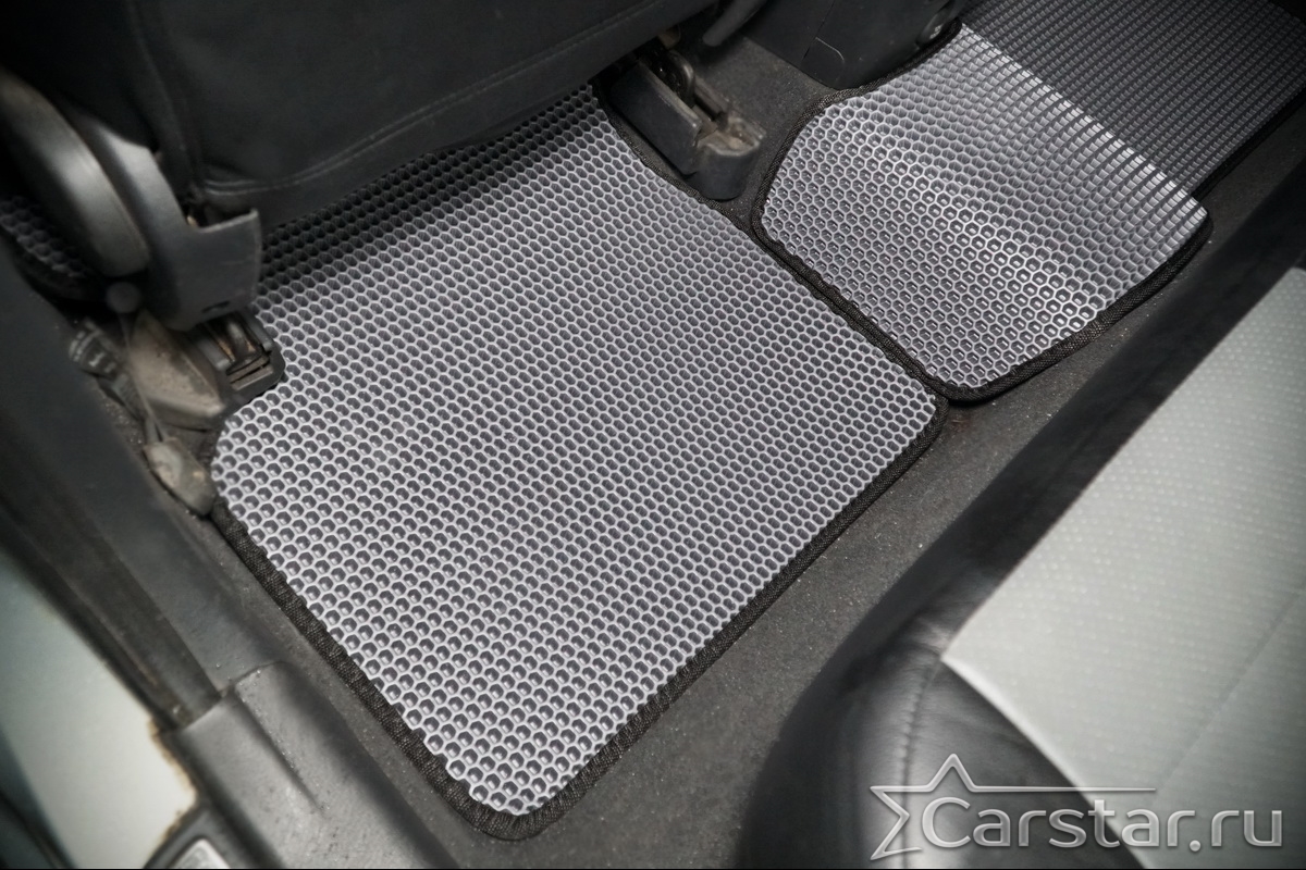 Толщина ковриков EVA составляет 10-12 мм. Глубина ячеек 7-8 мм. Такая толщина ковриков позволяет им служить довольно долго, не протираясь до 3 лет. А благодаря такой глубине ячеек коврик EVA площадью 1 кв.м. способен захватить около 3,5 л жидкости, сохраняя в чистоте вашу обувь и обивку салона.