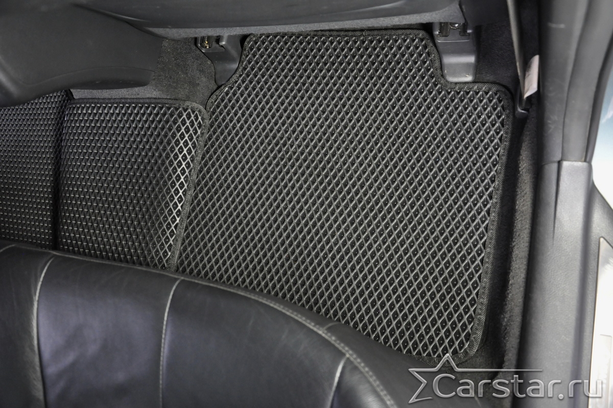 Толщина ковриков EVA составляет 10-12 мм. Глубина ячеек 7-8 мм. Такая толщина ковриков позволяет им служить довольно долго, не протираясь до 3 лет. А благодаря такой глубине ячеек коврик EVA площадью 1 кв.м. способен захватить около 3,5 л жидкости, сохраняя в чистоте вашу обувь и обивку салона.