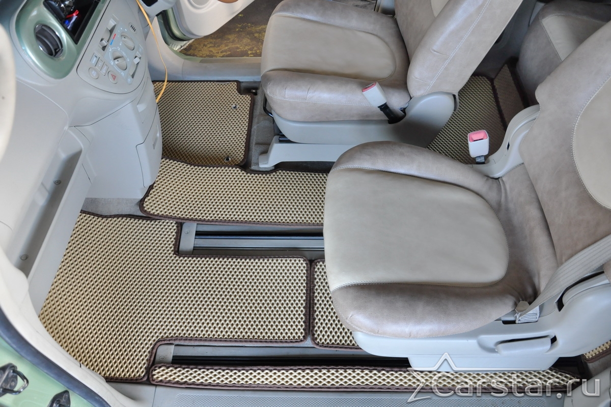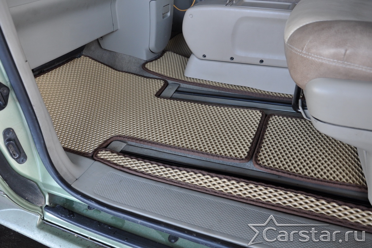 Толщина ковриков EVA составляет 10-12 мм. Глубина ячеек 7-8 мм. Такая толщина ковриков позволяет им служить довольно долго, не протираясь до 3 лет. А благодаря такой глубине ячеек коврик EVA площадью 1 кв.м. способен захватить около 3,5 л жидкости, сохраняя в чистоте вашу обувь и обивку салона.