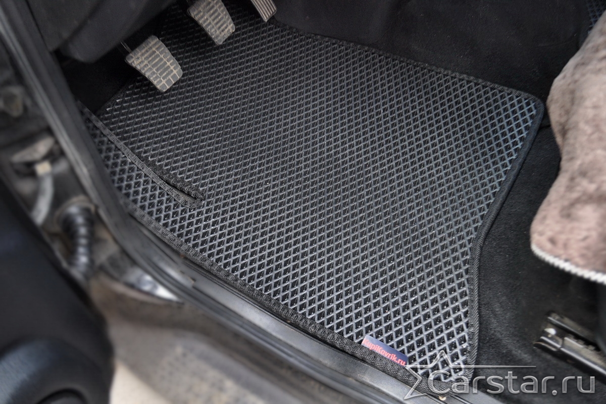 Толщина ковриков EVA составляет 10-12 мм. Глубина ячеек 7-8 мм. Такая толщина ковриков позволяет им служить довольно долго, не протираясь до 3 лет. А благодаря такой глубине ячеек коврик EVA площадью 1 кв.м. способен захватить около 3,5 л жидкости, сохраняя в чистоте вашу обувь и обивку салона.