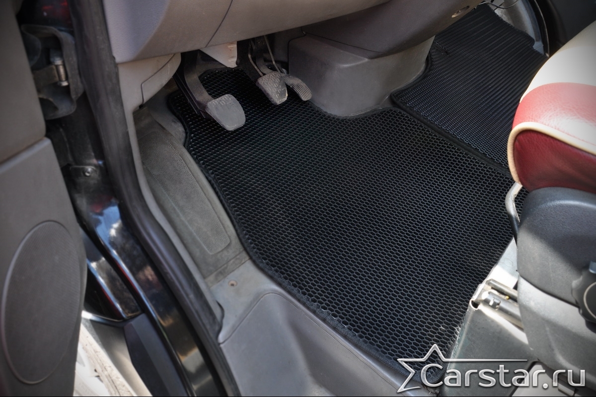 Толщина ковриков EVA составляет 10-12 мм. Глубина ячеек 7-8 мм. Такая толщина ковриков позволяет им служить довольно долго, не протираясь до 3 лет. А благодаря такой глубине ячеек коврик EVA площадью 1 кв.м. способен захватить около 3,5 л жидкости, сохраняя в чистоте вашу обувь и обивку салона.