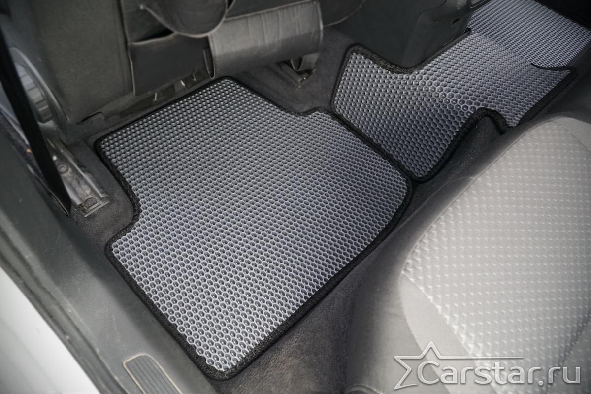 Толщина ковриков EVA составляет 10-12 мм. Глубина ячеек 7-8 мм. Такая толщина ковриков позволяет им служить довольно долго, не протираясь до 3 лет. А благодаря такой глубине ячеек коврик EVA площадью 1 кв.м. способен захватить около 3,5 л жидкости, сохраняя в чистоте вашу обувь и обивку салона.