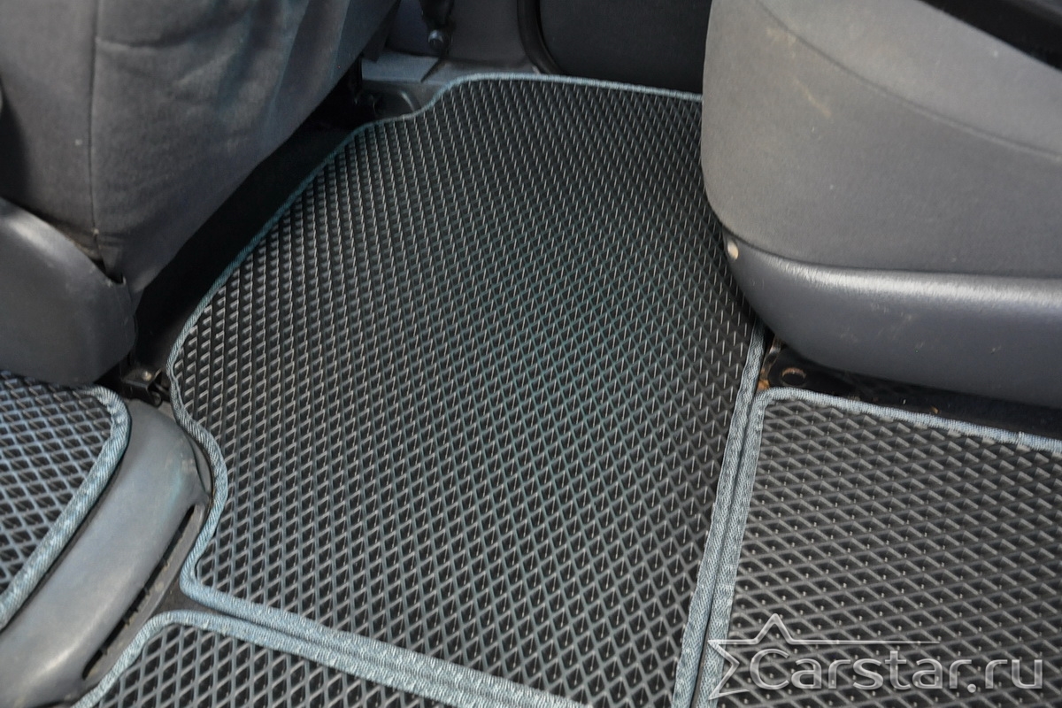 Толщина ковриков EVA составляет 10-12 мм. Глубина ячеек 7-8 мм. Такая толщина ковриков позволяет им служить довольно долго, не протираясь до 3 лет. А благодаря такой глубине ячеек коврик EVA площадью 1 кв.м. способен захватить около 3,5 л жидкости, сохраняя в чистоте вашу обувь и обивку салона.