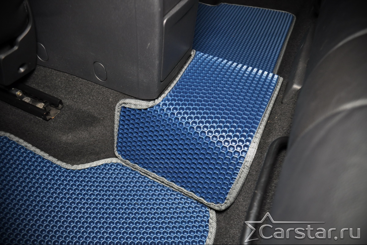 Толщина ковриков EVA составляет 10-12 мм. Глубина ячеек 7-8 мм. Такая толщина ковриков позволяет им служить довольно долго, не протираясь до 3 лет. А благодаря такой глубине ячеек коврик EVA площадью 1 кв.м. способен захватить около 3,5 л жидкости, сохраняя в чистоте вашу обувь и обивку салона.