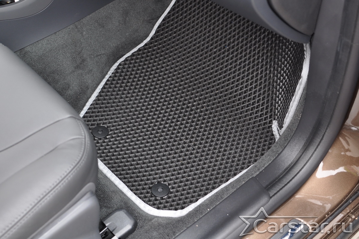Автомобильные коврики EVA прекрасно подходят для всех существующих марок и моделей авто, здесь вы сможете заказать оптимальный аксессуар любого возможного цвета. По размерам они больше, чем стандартные резиновые коврики, поэтому покрывают максимальную площадь пола в салоне. А двойная система креплений (клипсы и липучки) позволяет надежно зафиксировать коврики в нужном месте.