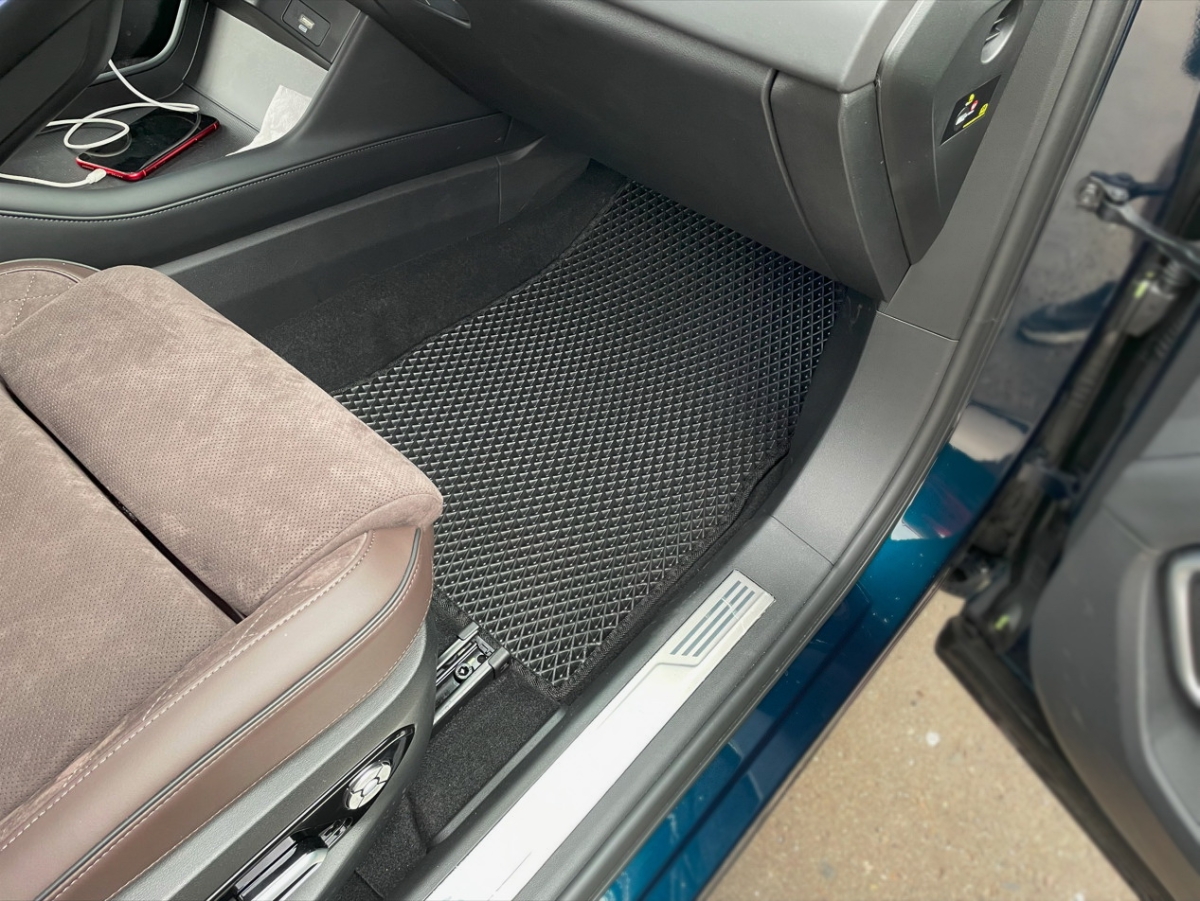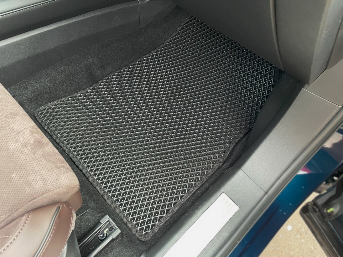Толщина ковриков EVA составляет 10-12 мм. Глубина ячеек 7-8 мм. Такая толщина ковриков позволяет им служить довольно долго, не протираясь до 3 лет. А благодаря такой глубине ячеек коврик EVA площадью 1 кв.м. способен захватить около 3,5 л жидкости, сохраняя в чистоте вашу обувь и обивку салона.