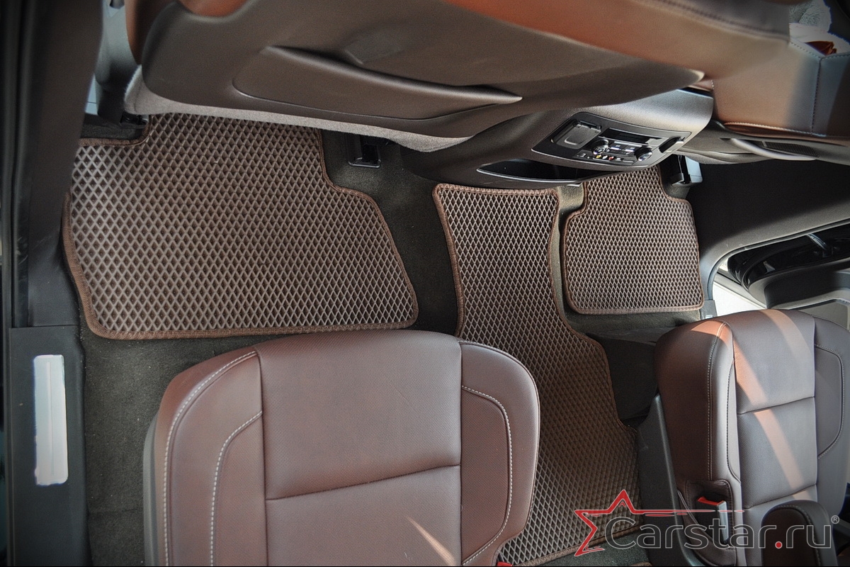 Двухслойные коврики EVA для Cadillac Escalade IV 3 ряда (2014->) – это инновационные, долговечные, удобные аксессуары, которые помогут надежно защитить салон и багажник вашего авто от пыли, грязи и влаги в любое время года. Технология двойного слоя - новейшая уникальная разработка от компании Carstar.
