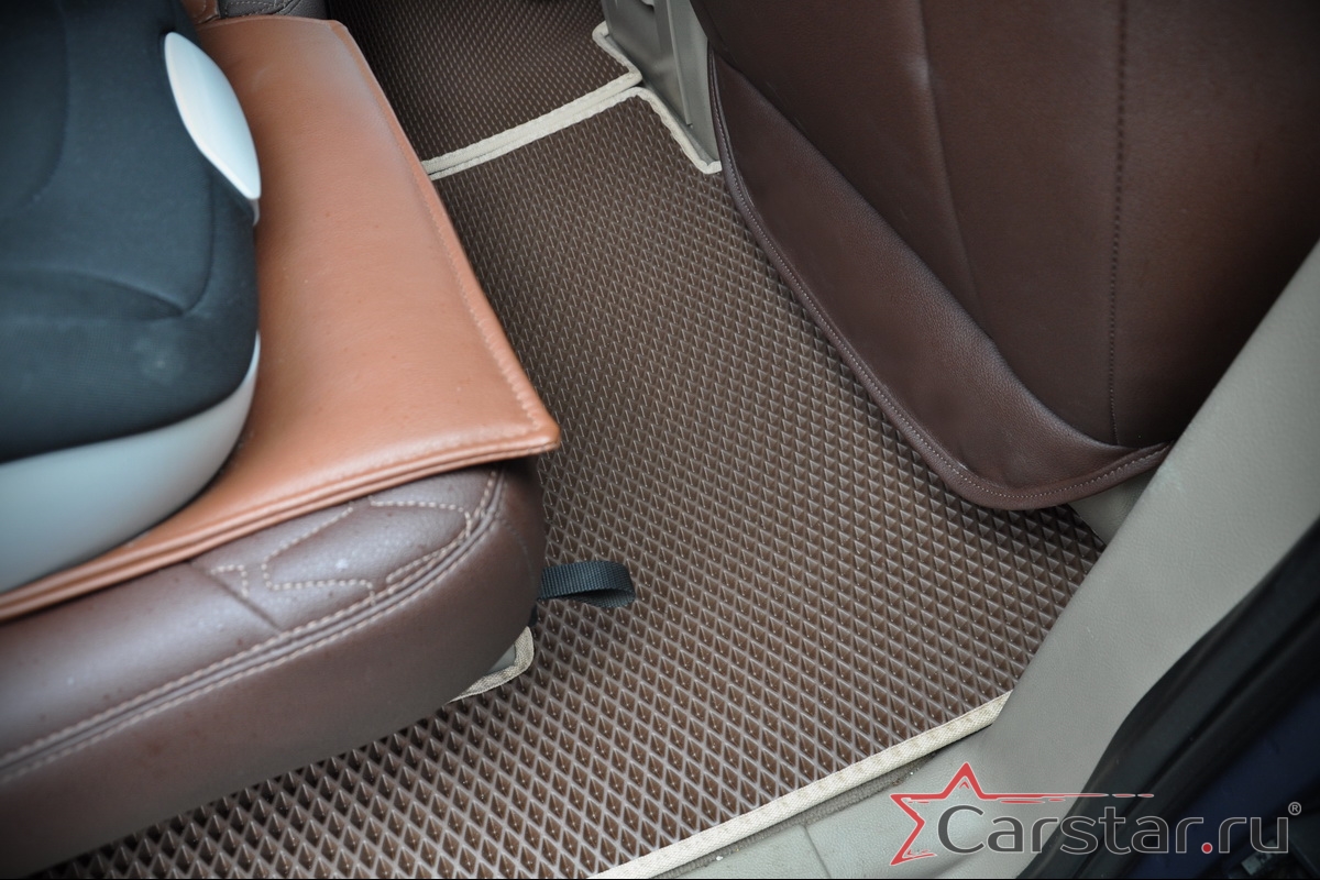 Текстильные коврики надёжно крепятся с помощью оригинальных систем фиксации. Обратная сторона имеет противоскользящее покрытие, что обеспечивает защиту от смещений и безопасность. Максимальное удобство достигается точными лекалами.