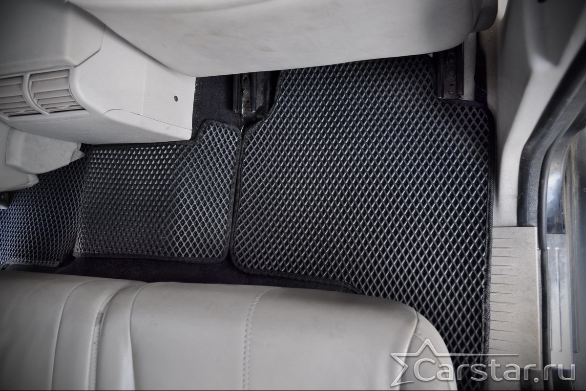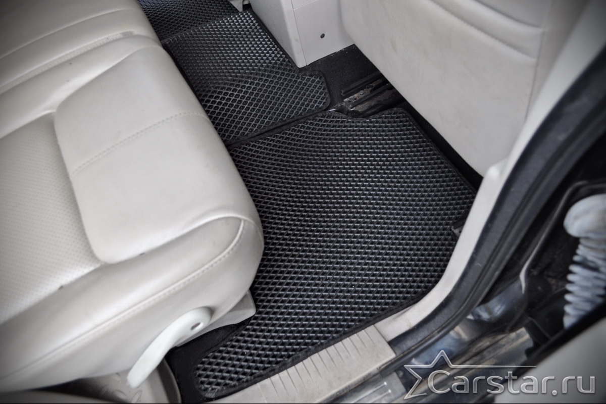 Текстильные коврики надёжно крепятся с помощью оригинальных систем фиксации. Обратная сторона имеет противоскользящее покрытие, что обеспечивает защиту от смещений и безопасность. Максимальное удобство достигается точными лекалами.