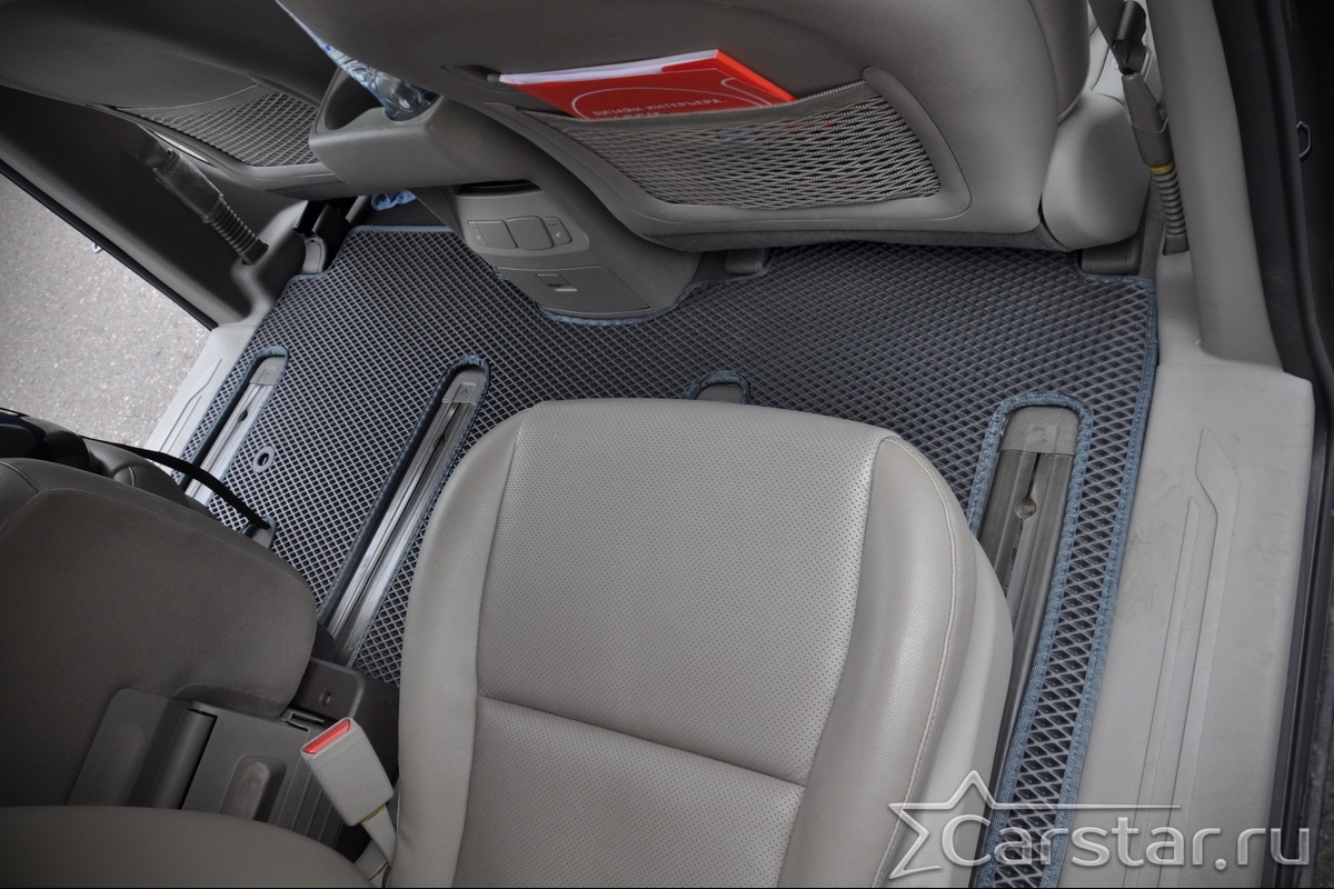 Текстильные коврики надёжно крепятся с помощью оригинальных систем фиксации. Обратная сторона имеет противоскользящее покрытие, что обеспечивает защиту от смещений и безопасность. Максимальное удобство достигается точными лекалами.