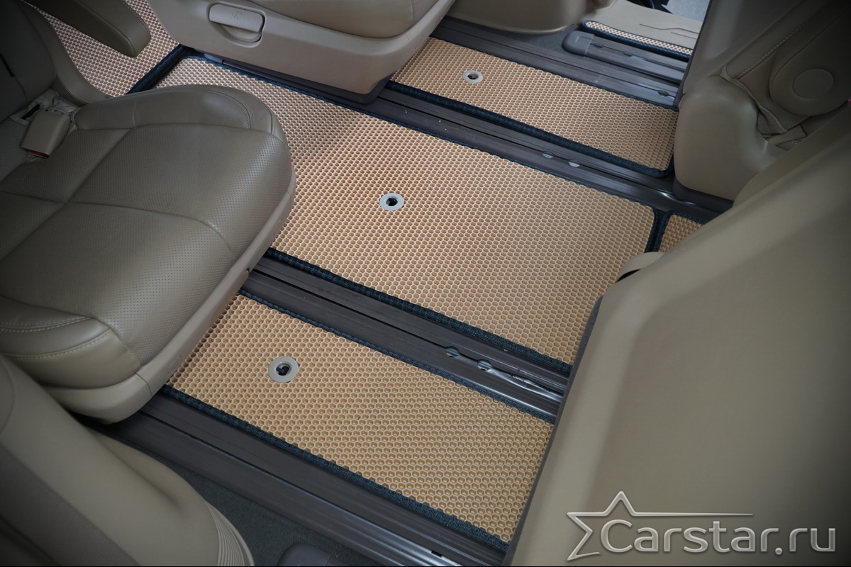Текстильные автомобильные коврики Kia Carnival III (9мест) 2+2 без трансформеров (2014->) – это классический аксессуар, который обеспечит салону автомобиля неизменную чистоту, порядок и уют. Компания Carstar предлагает изделия из качественного ковролина в сочетании с полипропиленовым основанием на шипах, такая комбинация делает их прочными и водонепроницаемыми.