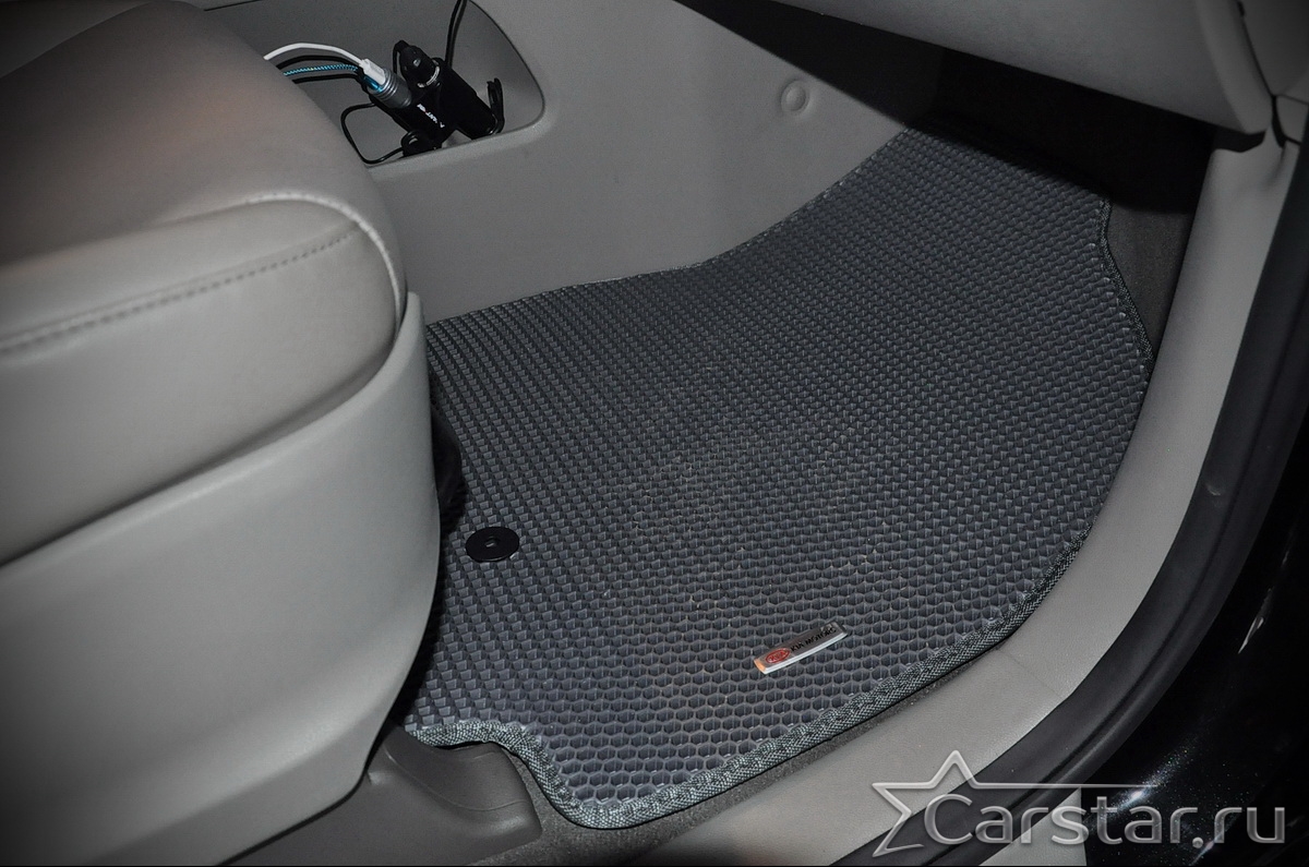 Текстильные коврики надёжно крепятся с помощью оригинальных систем фиксации. Обратная сторона имеет противоскользящее покрытие, что обеспечивает защиту от смещений и безопасность. Максимальное удобство достигается точными лекалами.