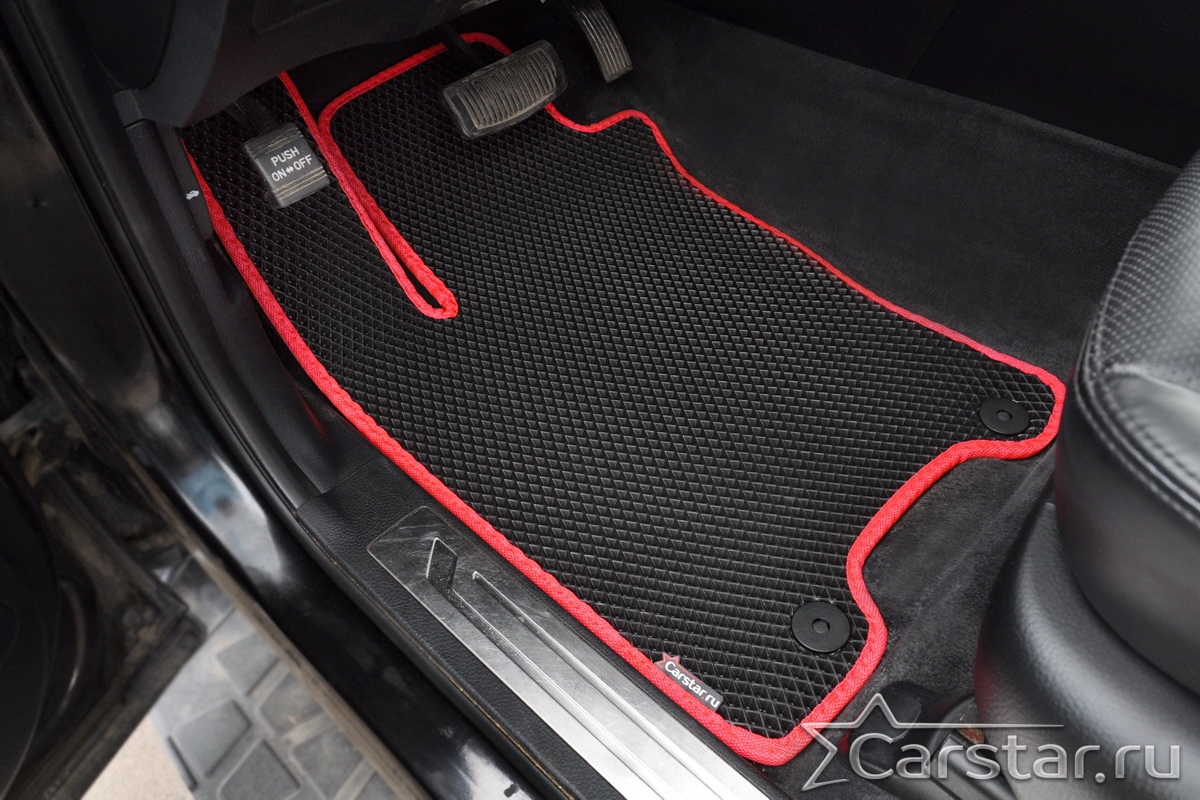 Текстильные коврики надёжно крепятся с помощью оригинальных систем фиксации. Обратная сторона имеет противоскользящее покрытие, что обеспечивает защиту от смещений и безопасность. Максимальное удобство достигается точными лекалами.
