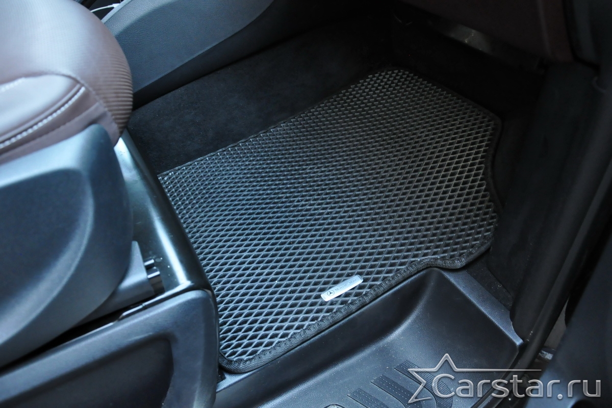 Текстильные коврики надёжно крепятся с помощью оригинальных систем фиксации. Обратная сторона имеет противоскользящее покрытие, что обеспечивает защиту от смещений и безопасность. Максимальное удобство достигается точными лекалами.